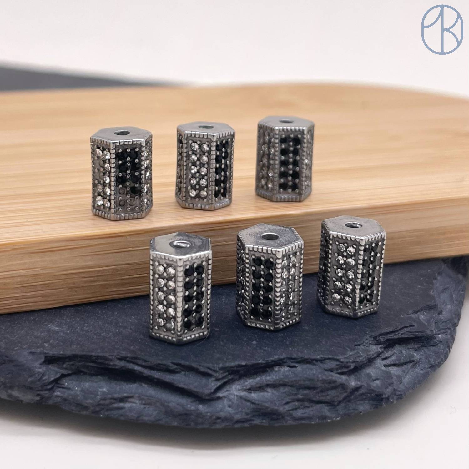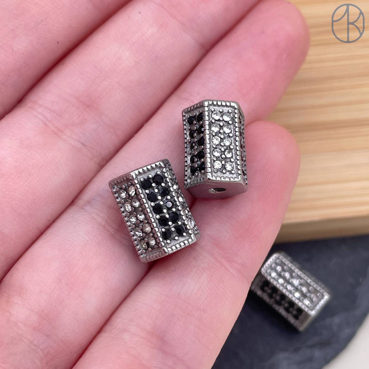 Бусина сталь цилиндр микс цирконы, цвет серебро 11х8 мм