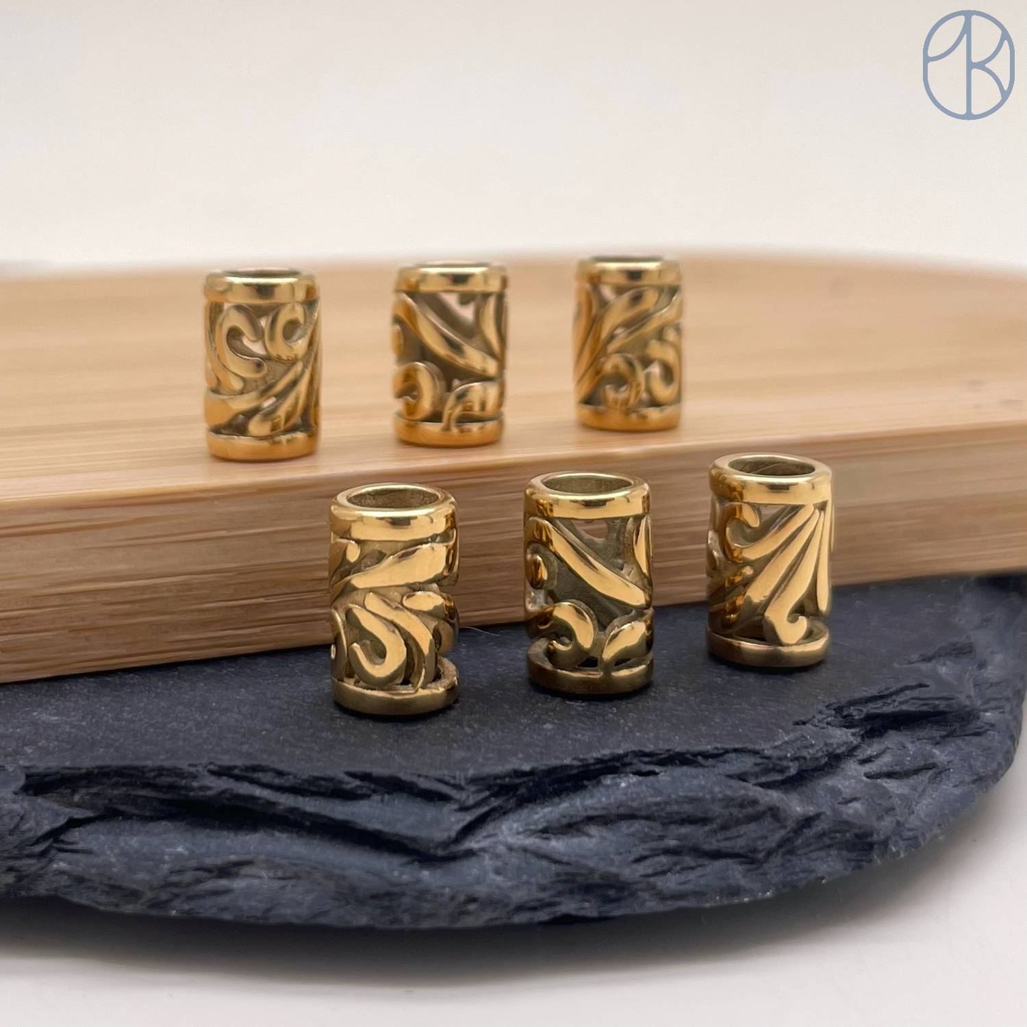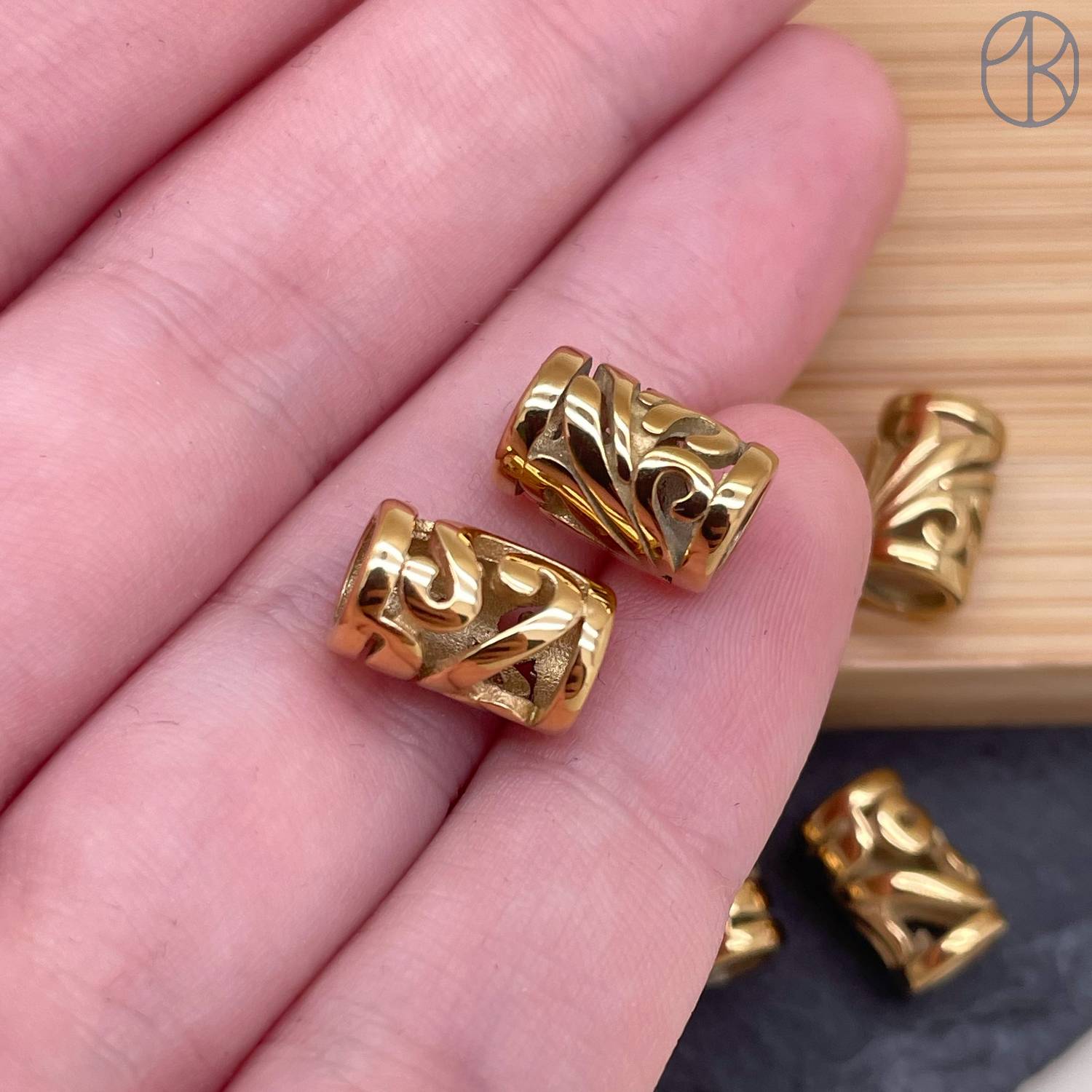 Бусина сталь цилиндр узор, цвет золото 11х7 мм