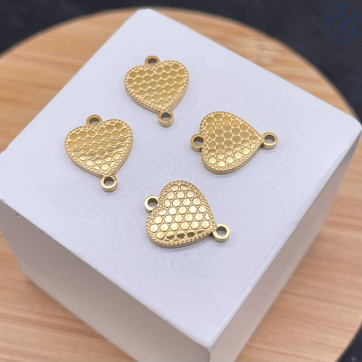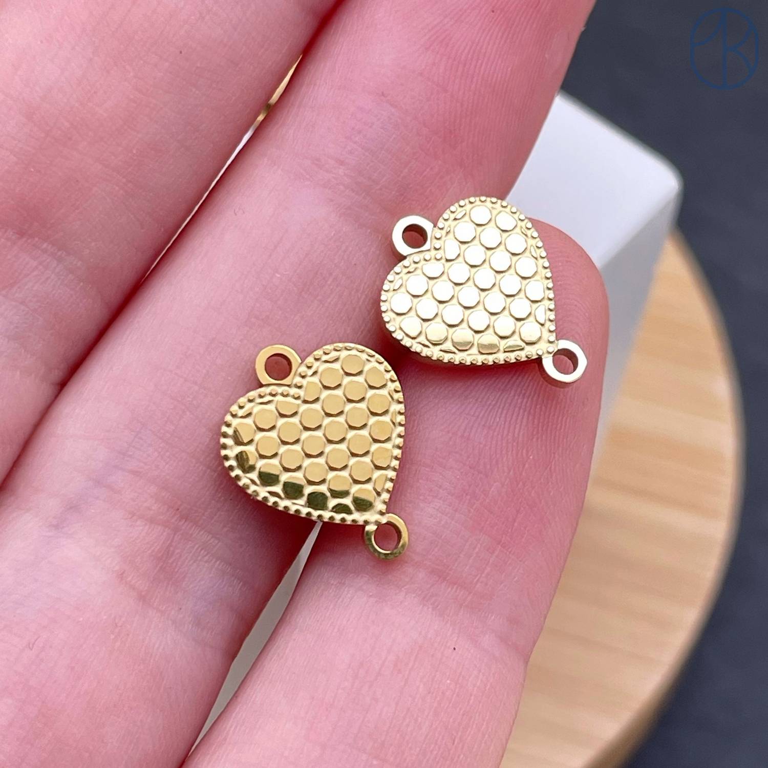 Коннектор сердце сталь 13 мм, цвет золото 18К
