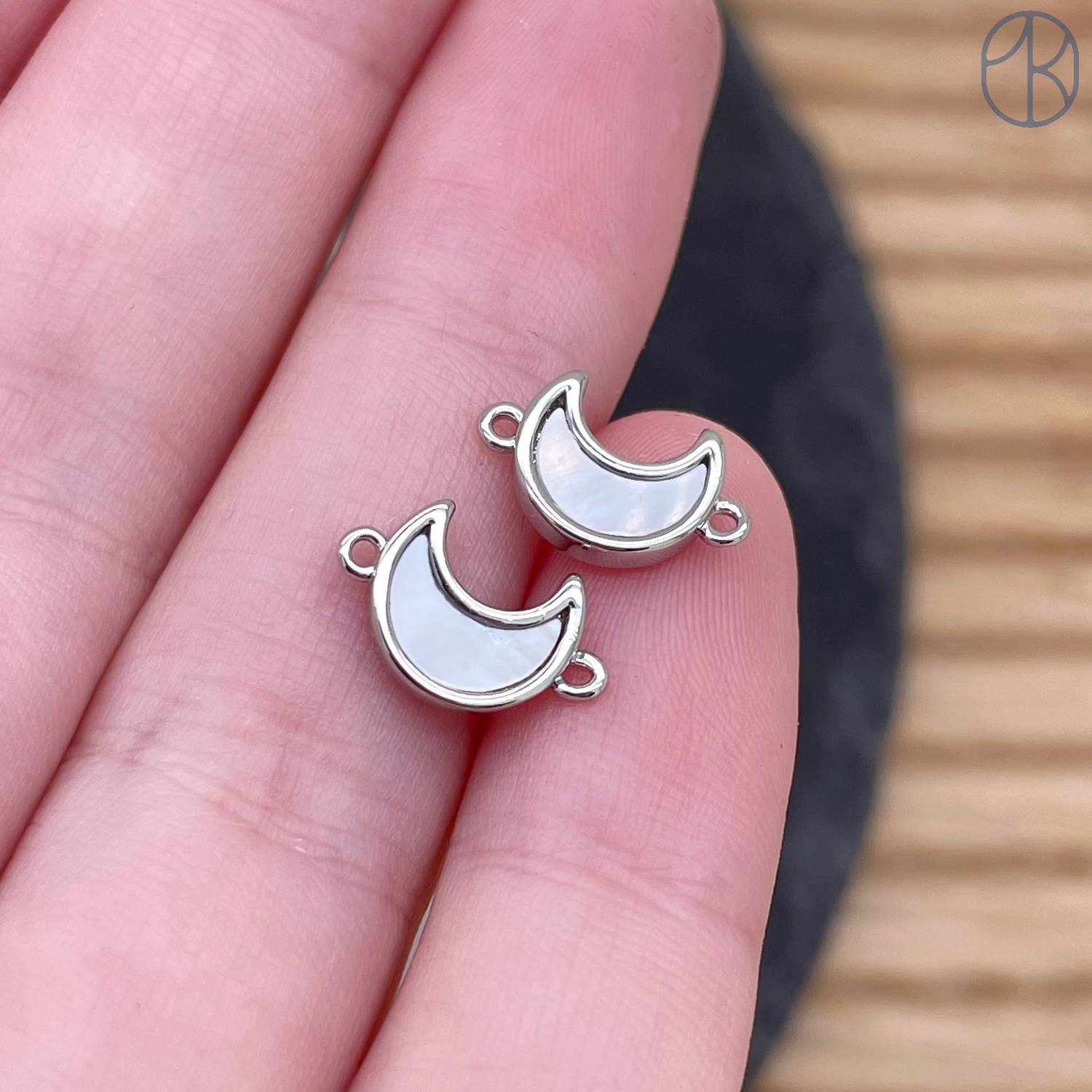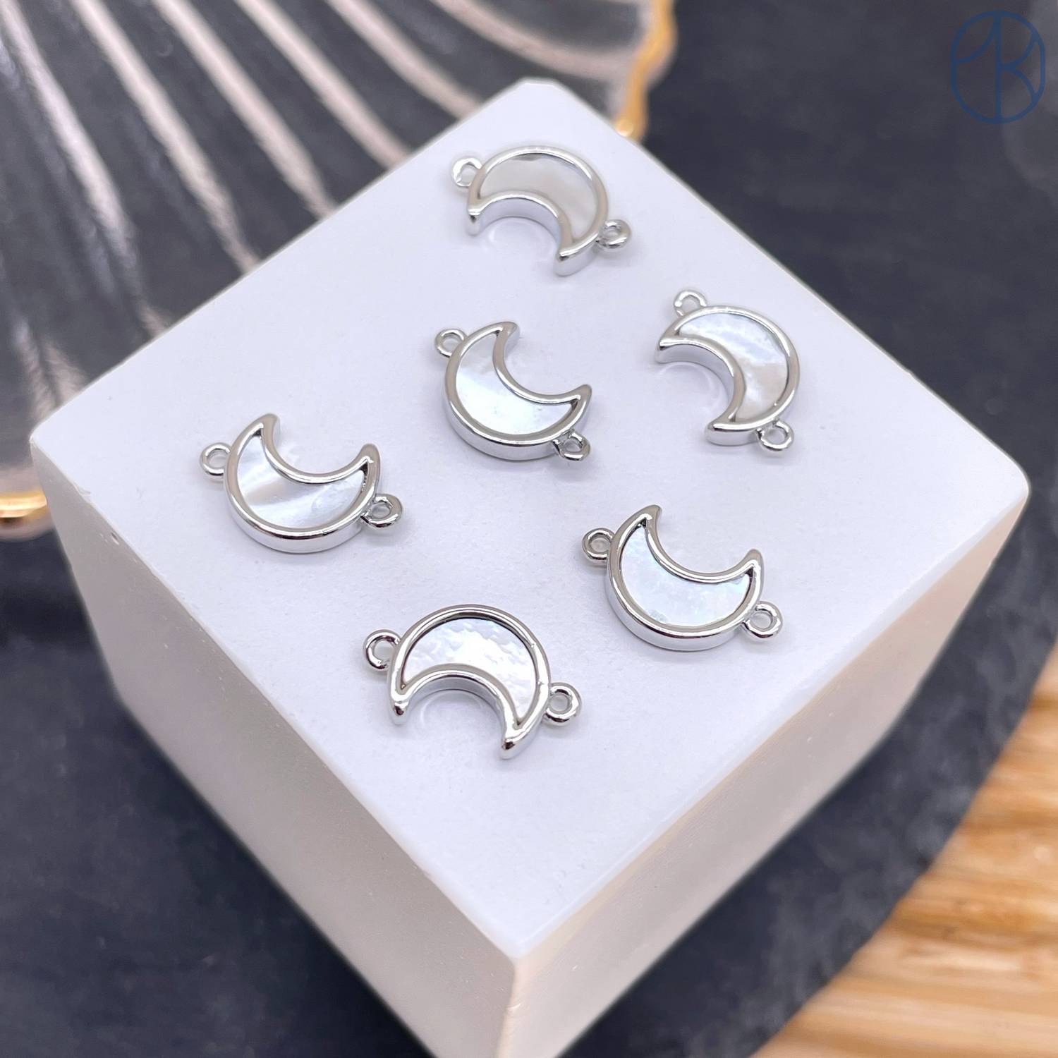 Коннектор полумесяц перламутр, цвет серебро 12х7 мм