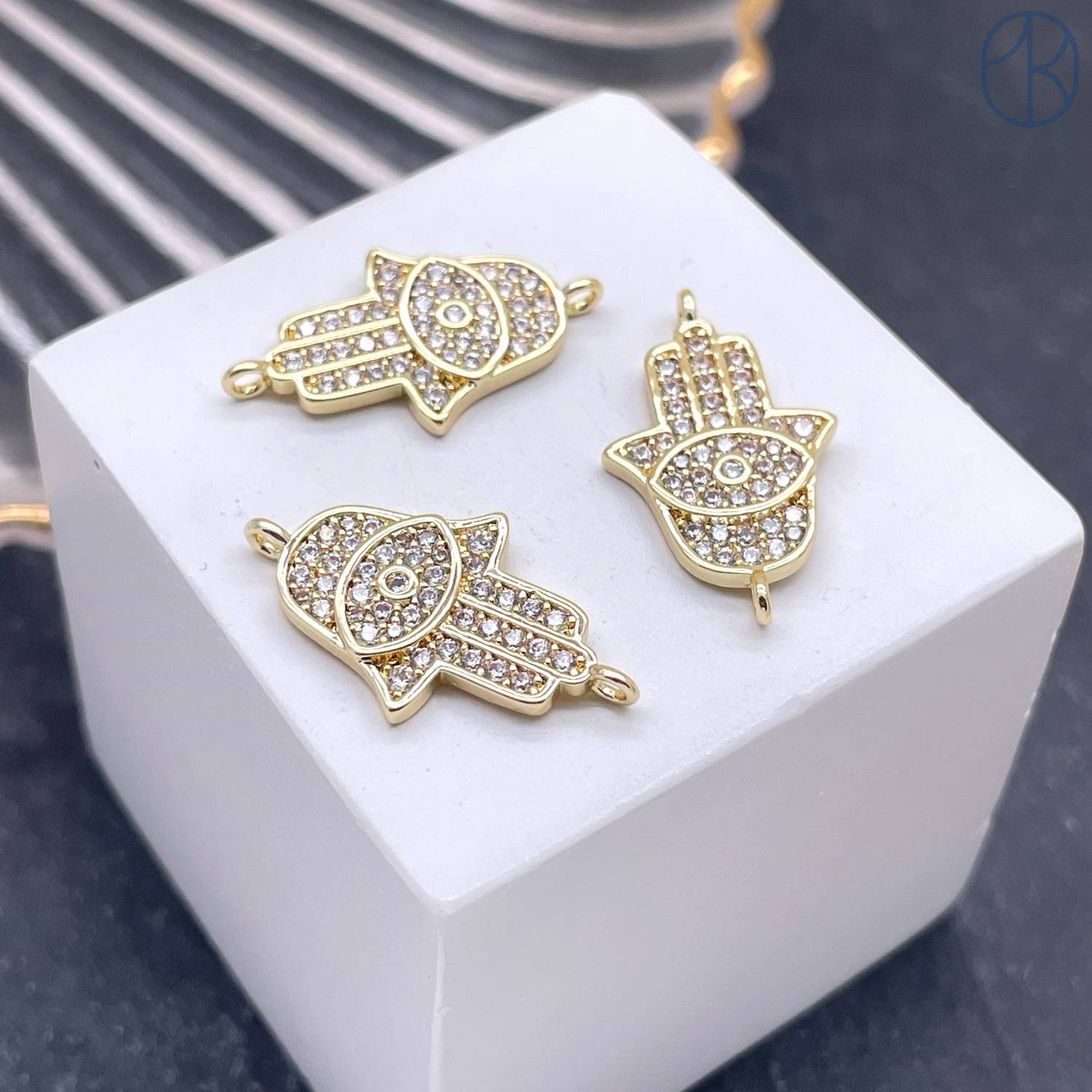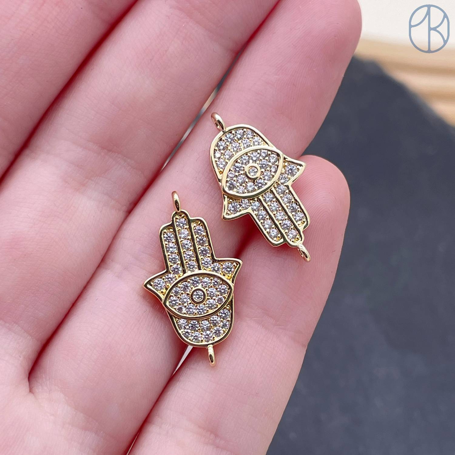 Коннектор рука Фатимы цирконы, цвет золото 21х12 мм