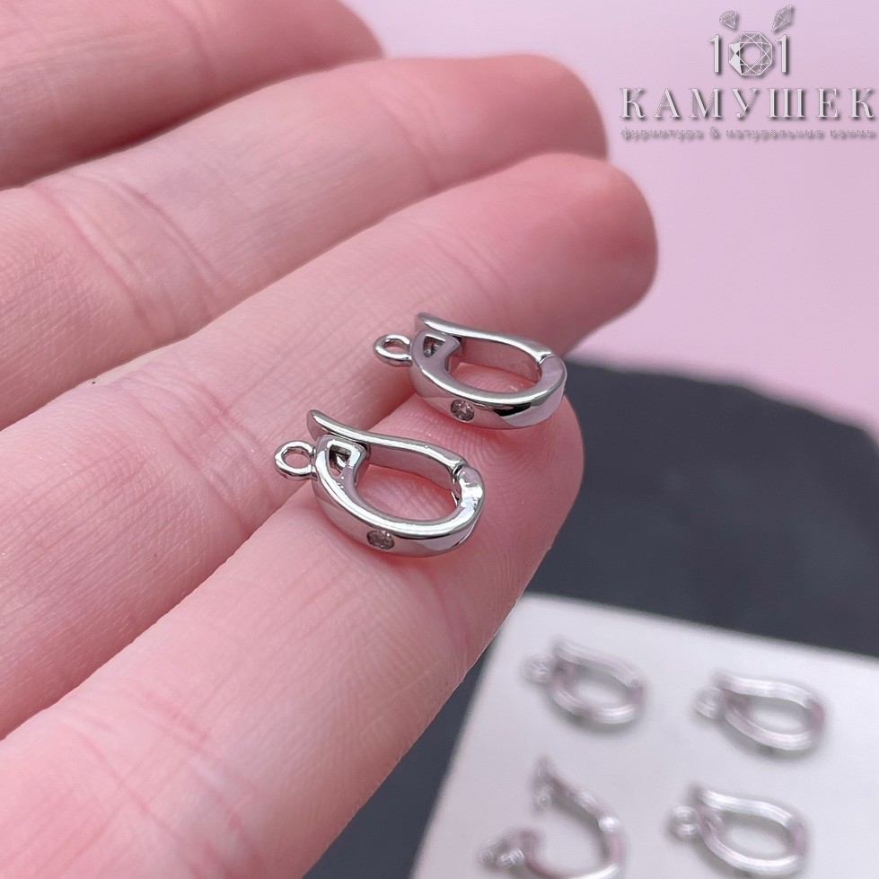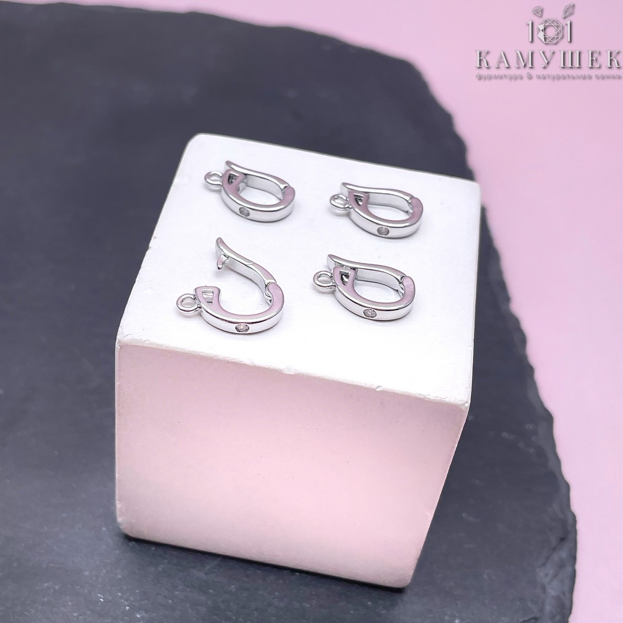 Бейл съемный овал циркон, цвет серебро 12х7 мм