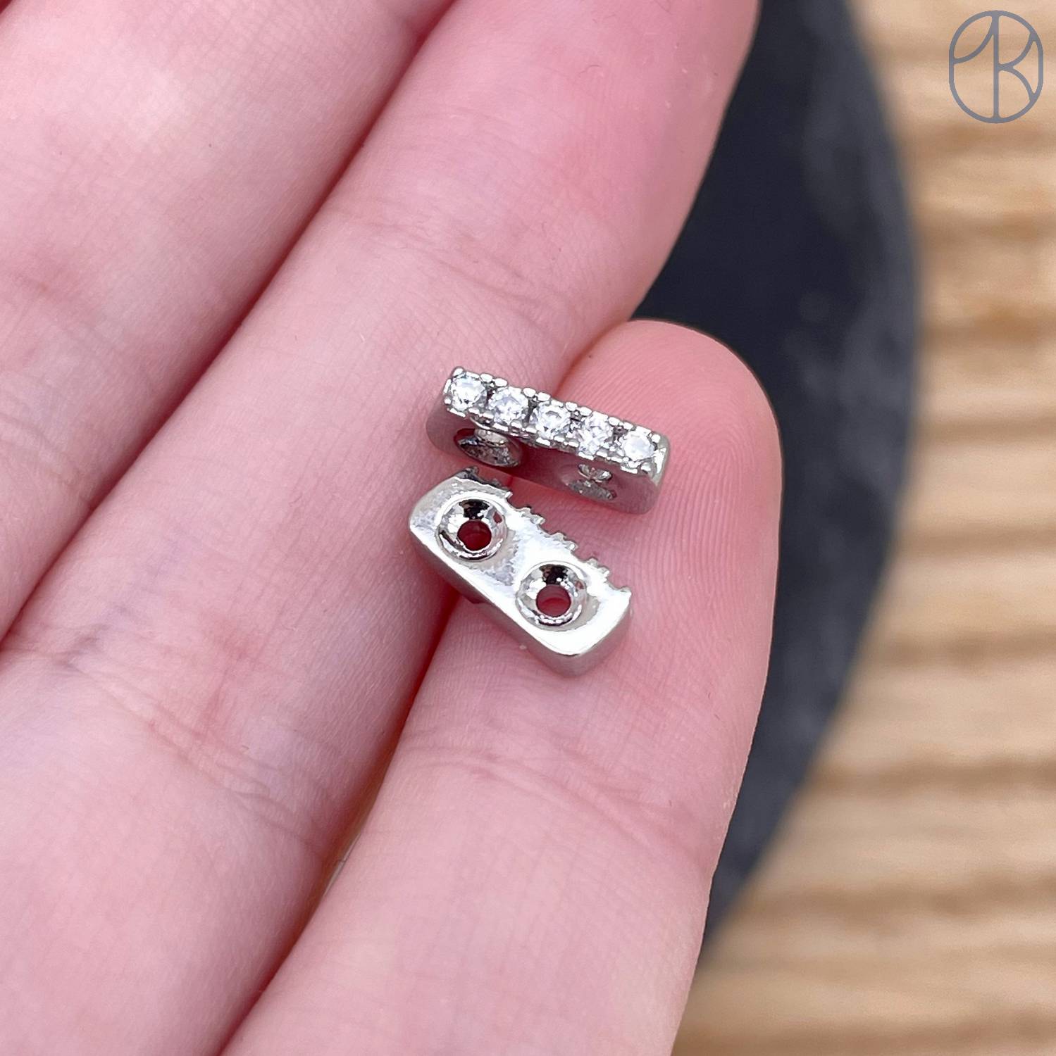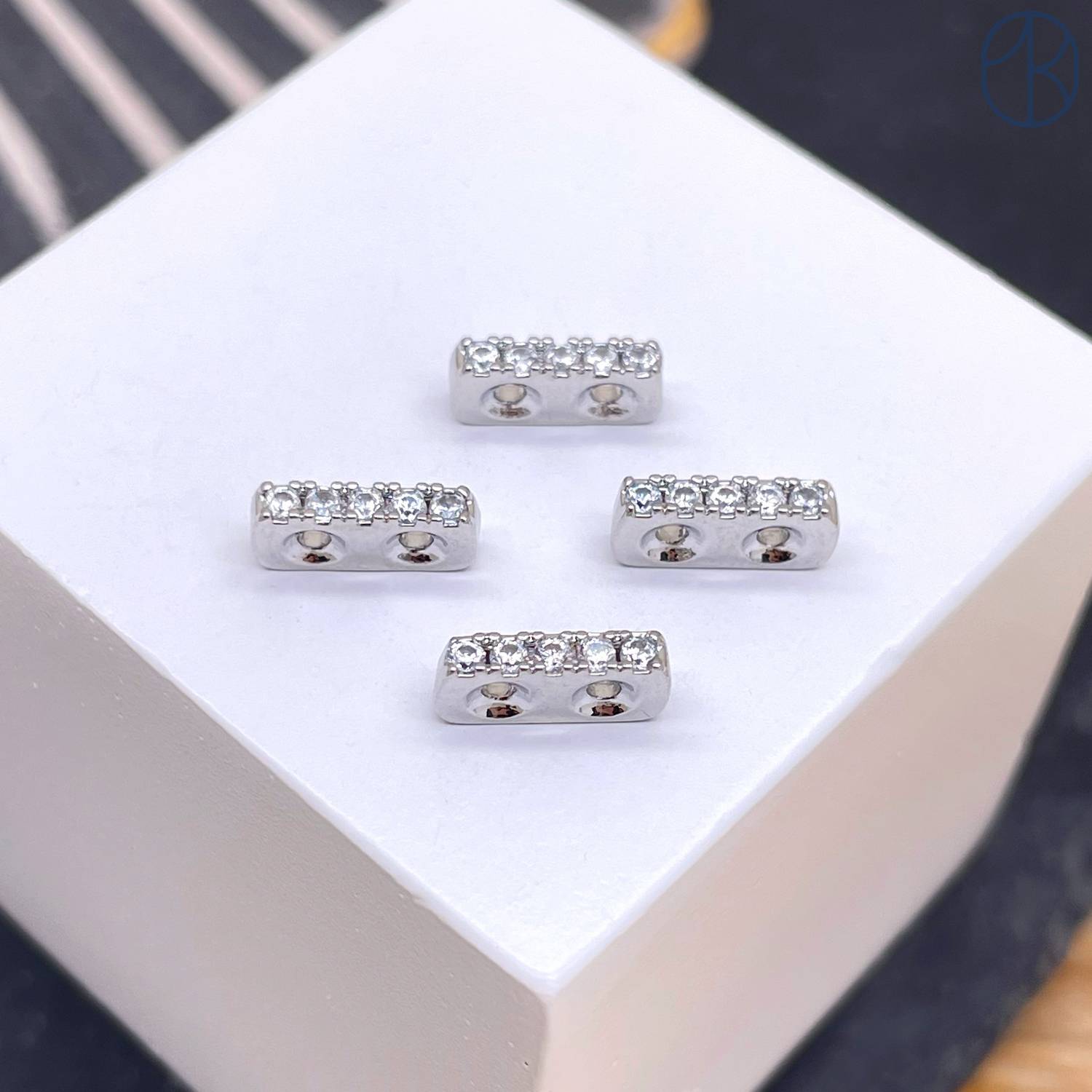 Бусина 2 ряда цирконы, цвет серебро 9 мм