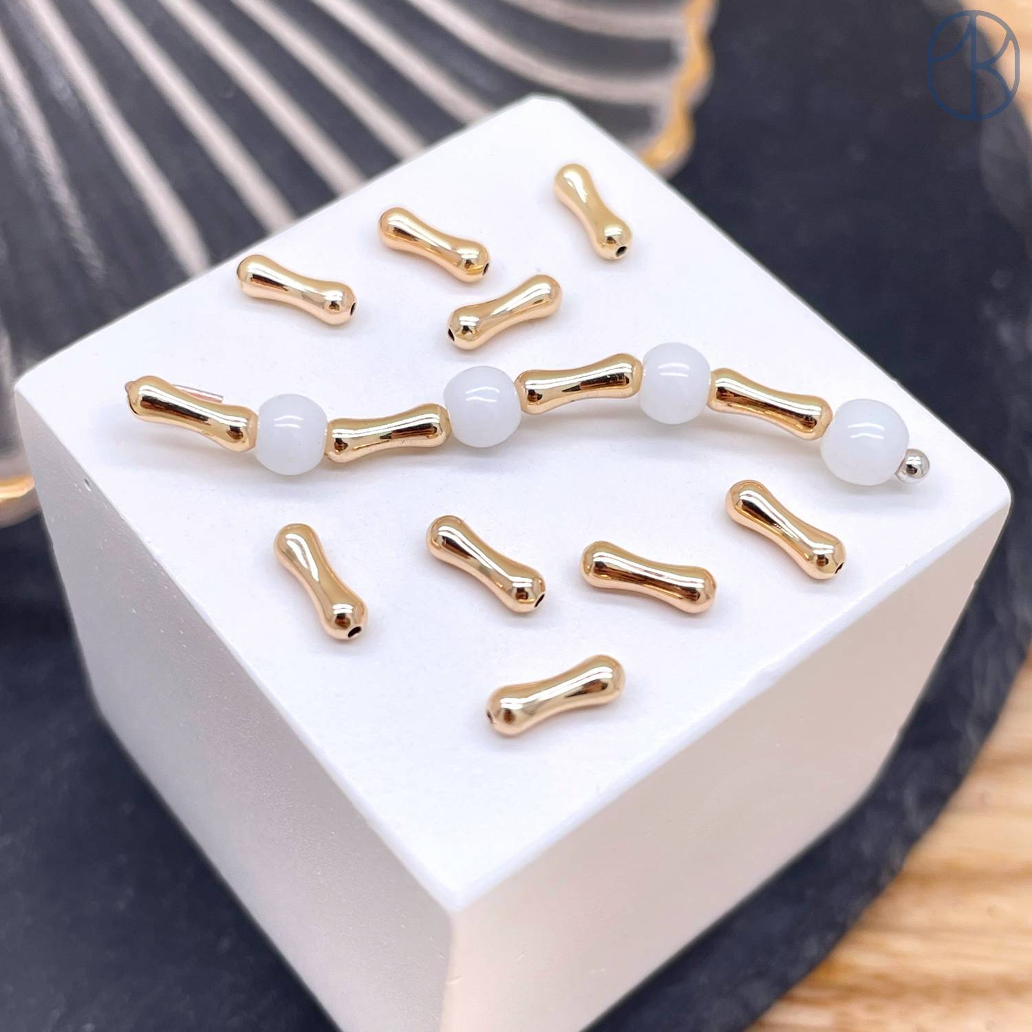 Бусина косточка, цвет золото 7 мм
