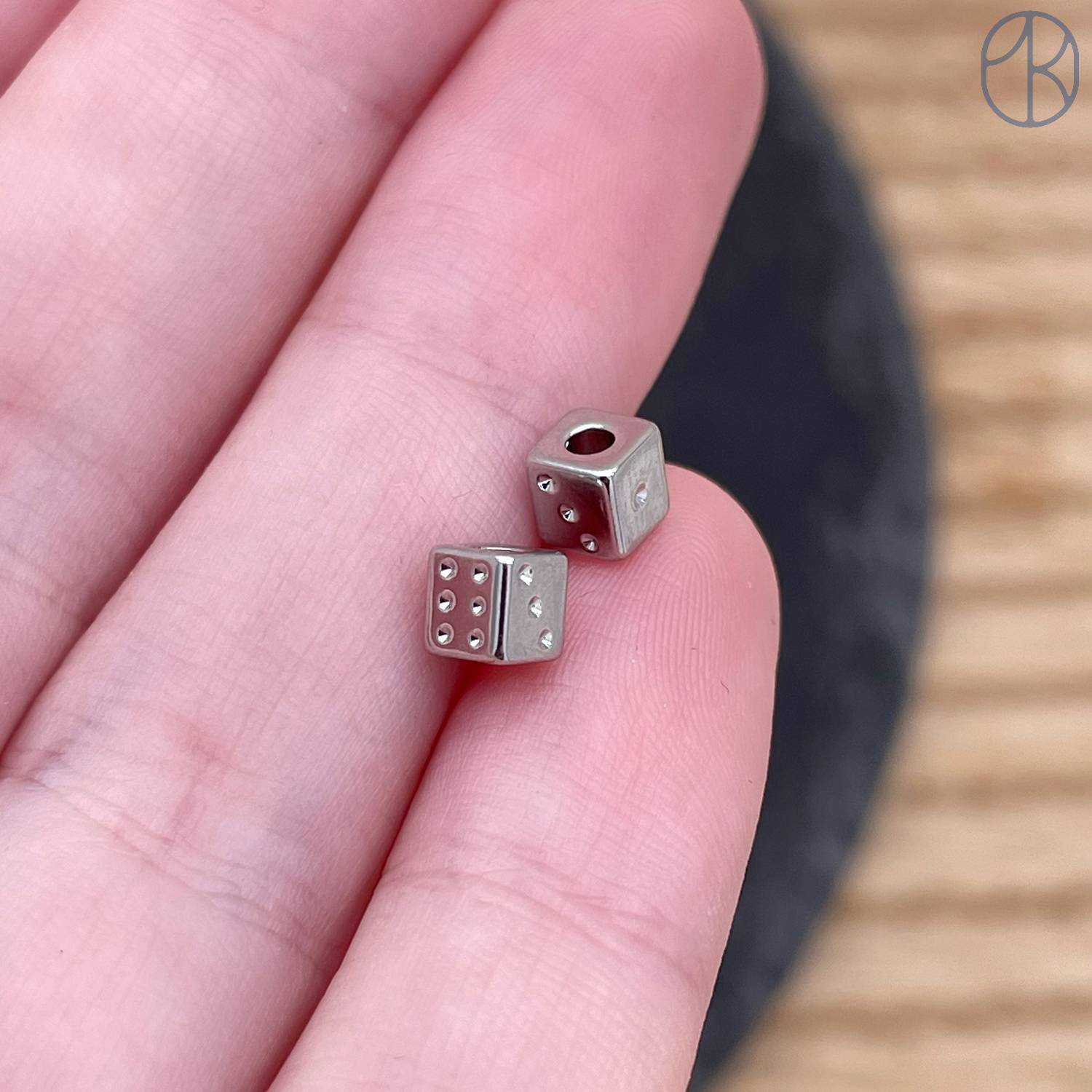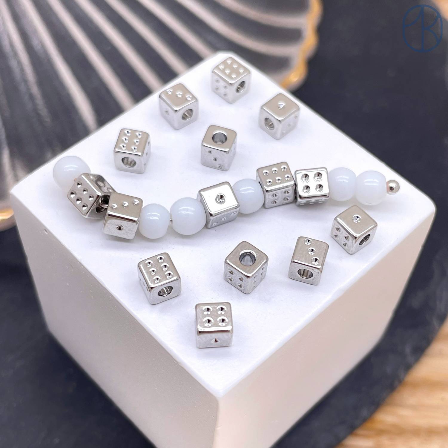 Бусина кубик игральный, цвет серебро 4 мм