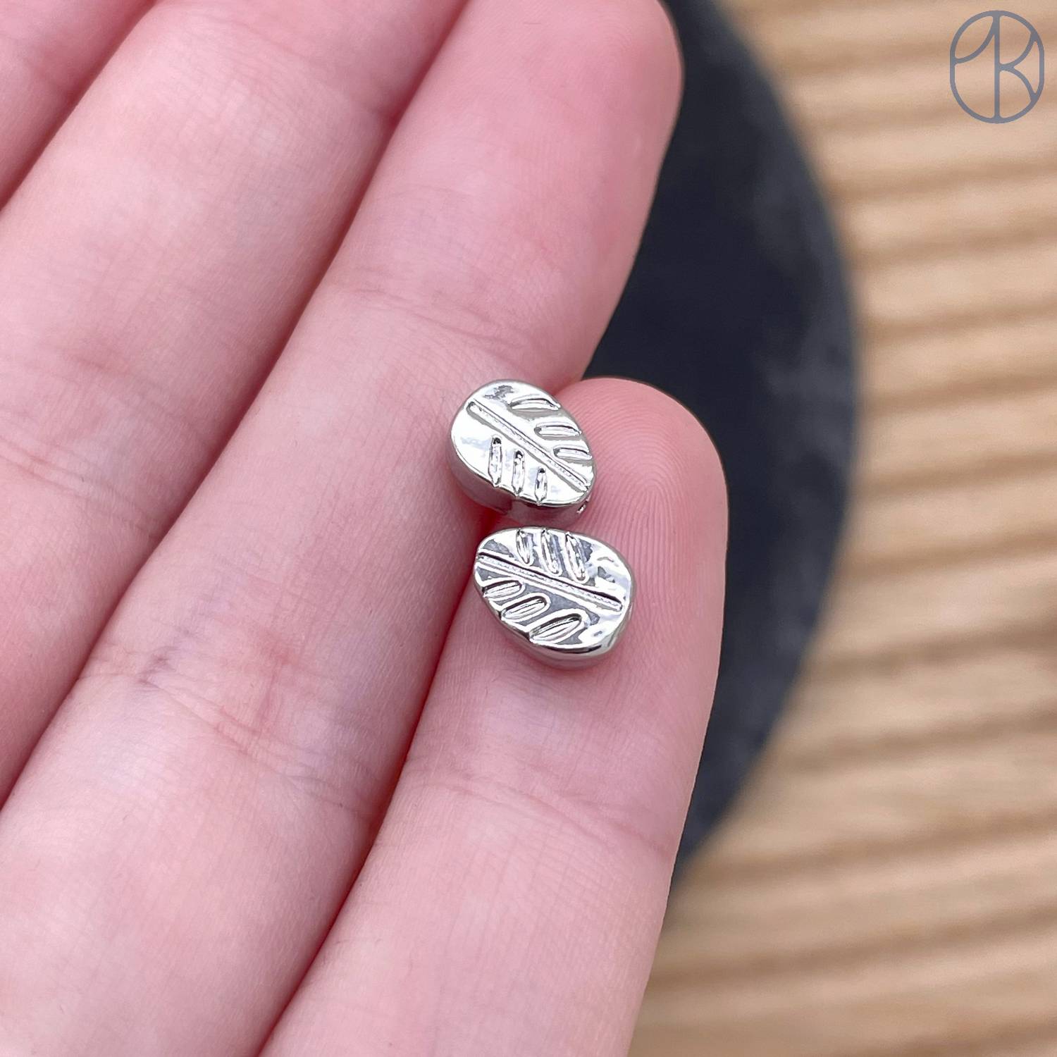 Бусина лист, цвет серебро 7 мм