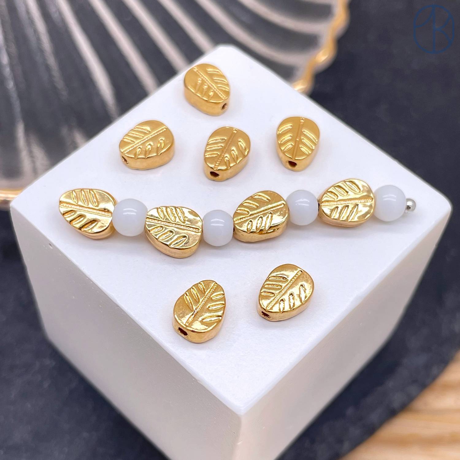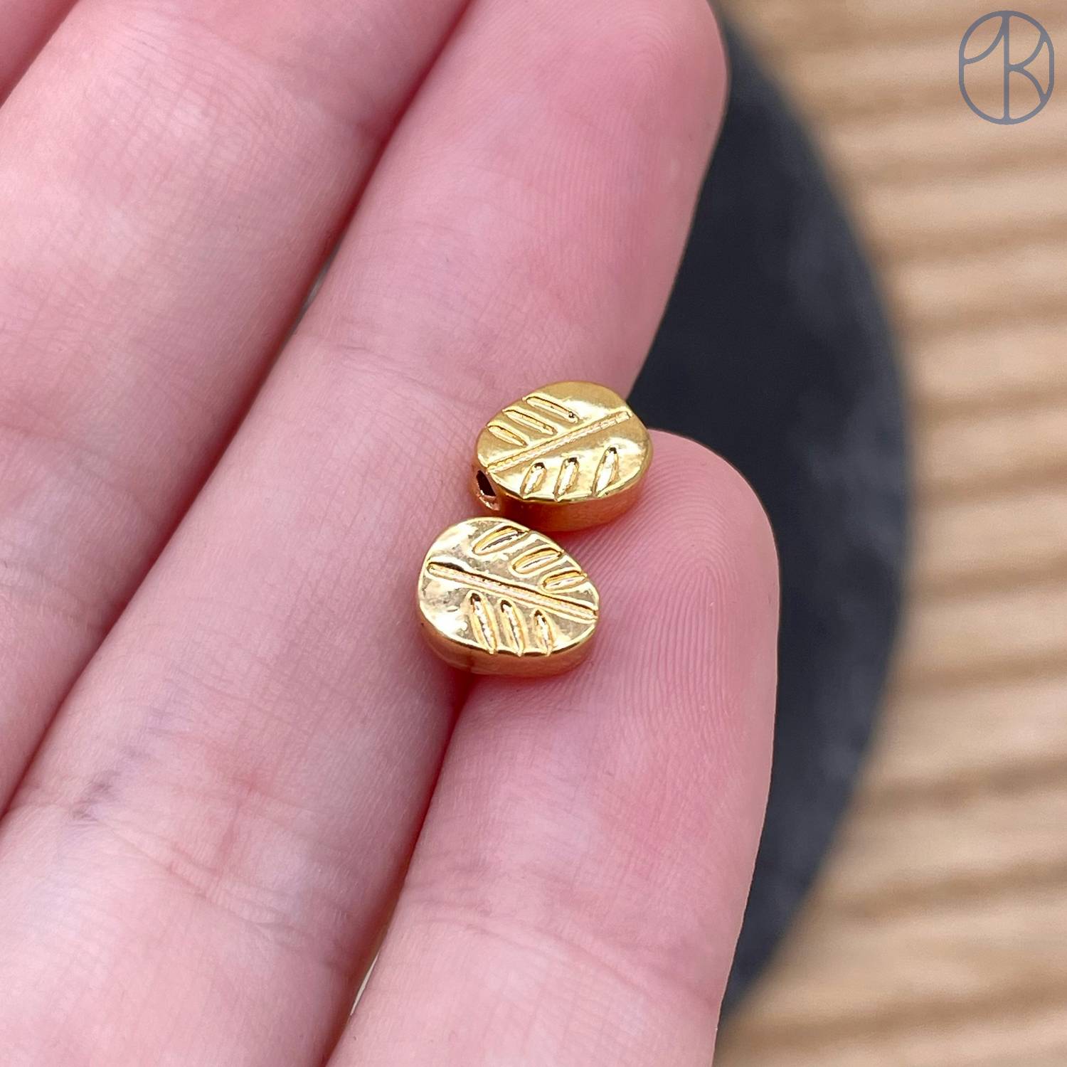 Бусина лист, цвет золото 7 мм