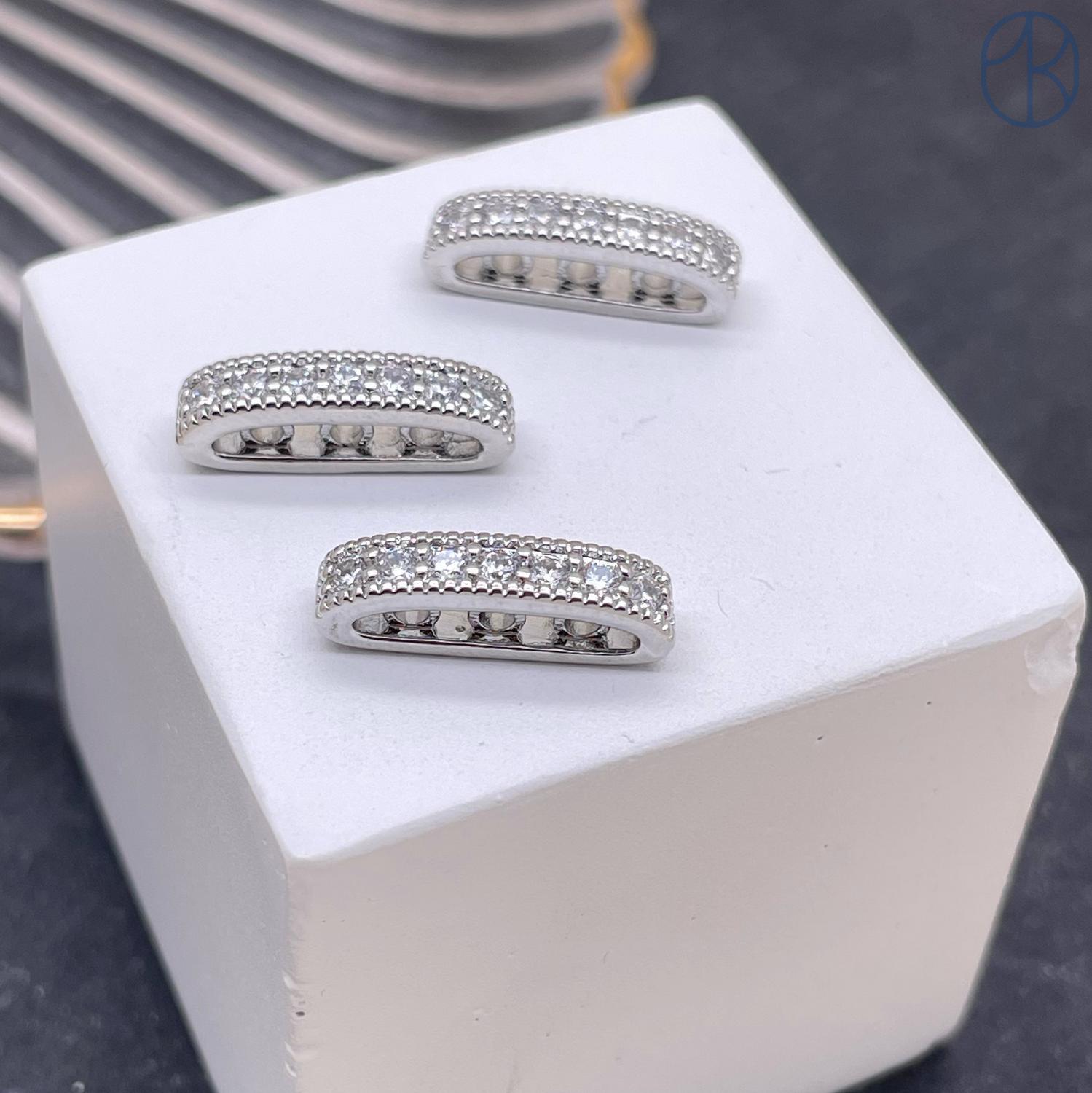 Бусина-разделитель 3 ряда цирконы, цвет серебро 16х4 мм