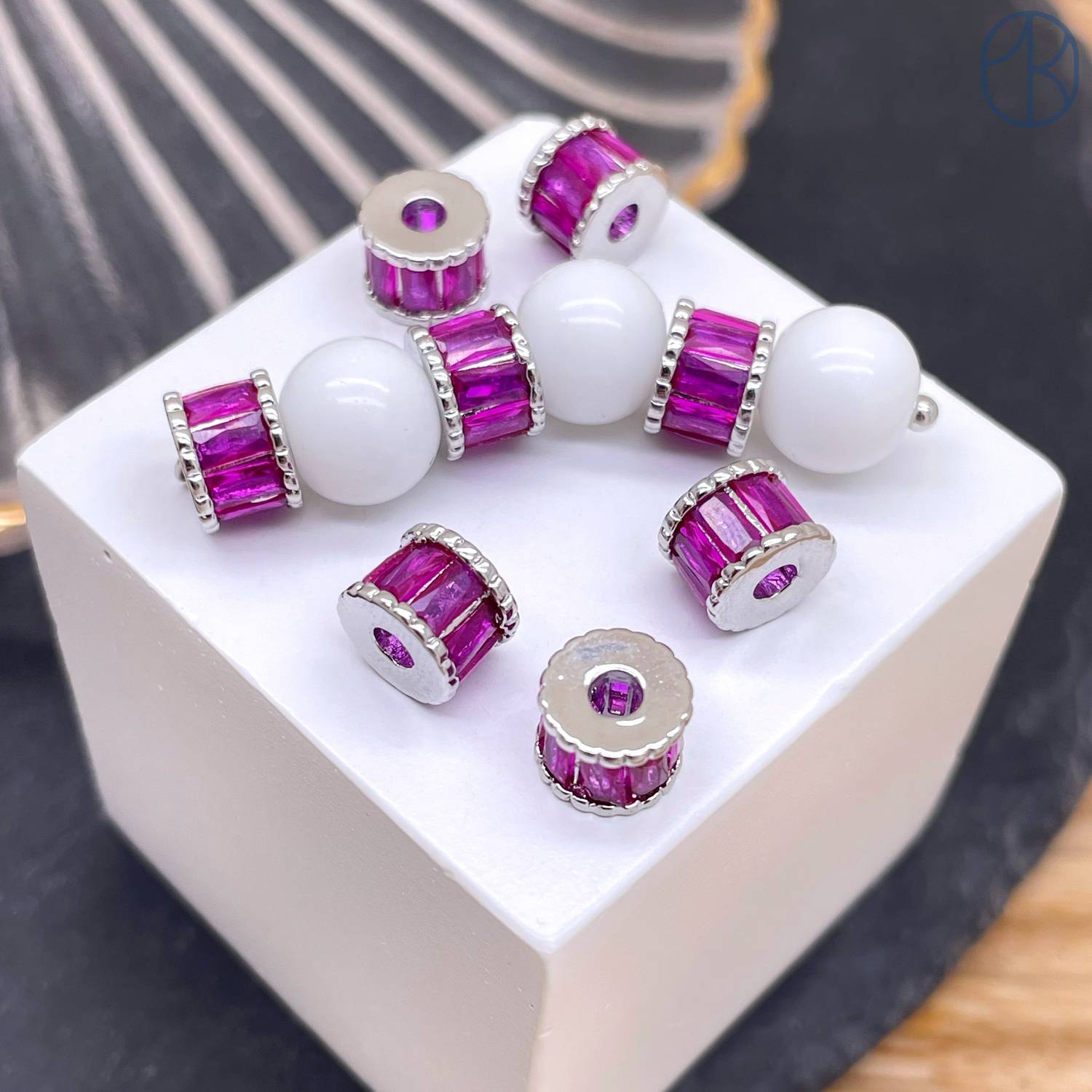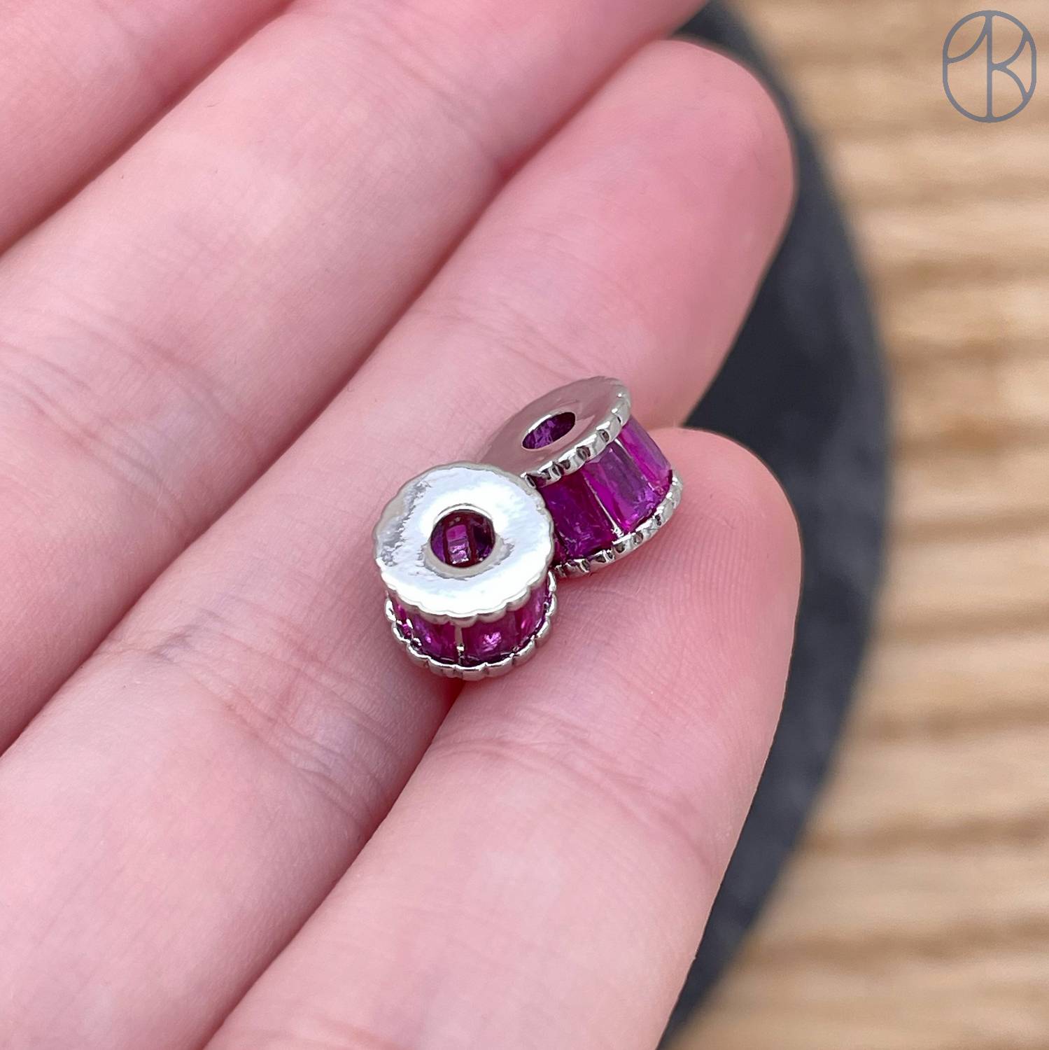 Бусина цирконы фуксия, цвет серебро 6 мм