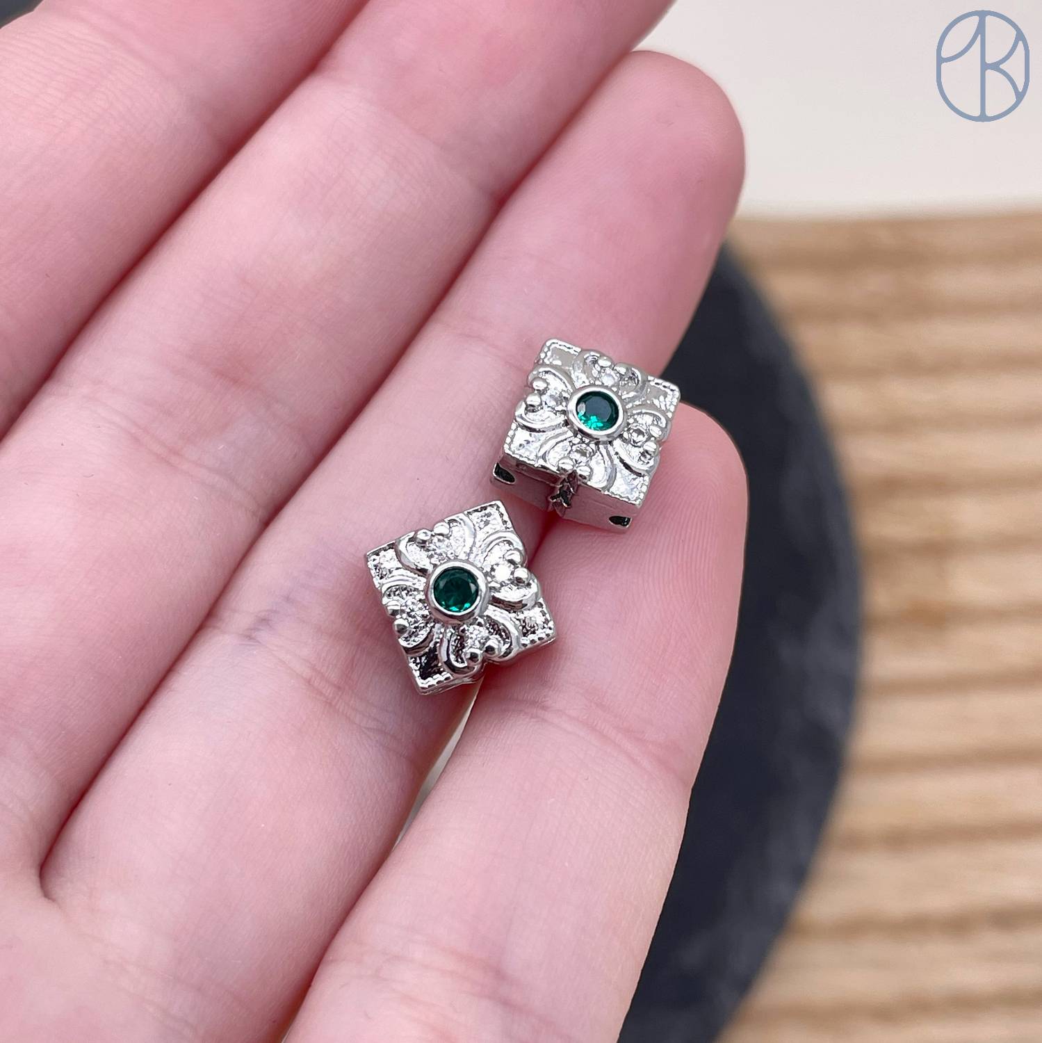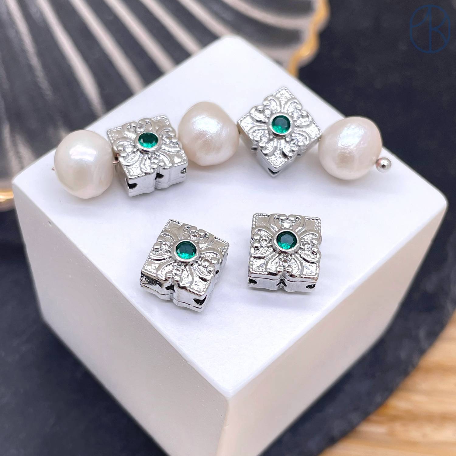 Бусина цветок зеленый циркон, цвет серебро 8 мм