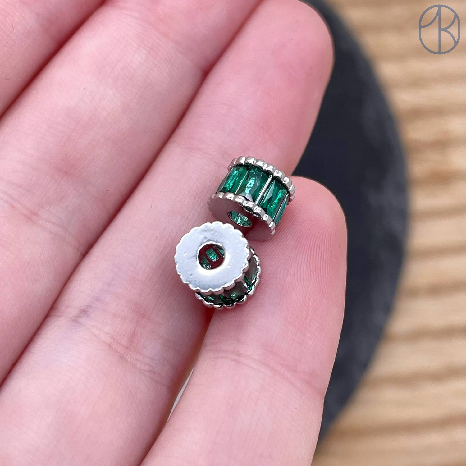 Бусина зеленые цирконы, цвет серебро 6 мм