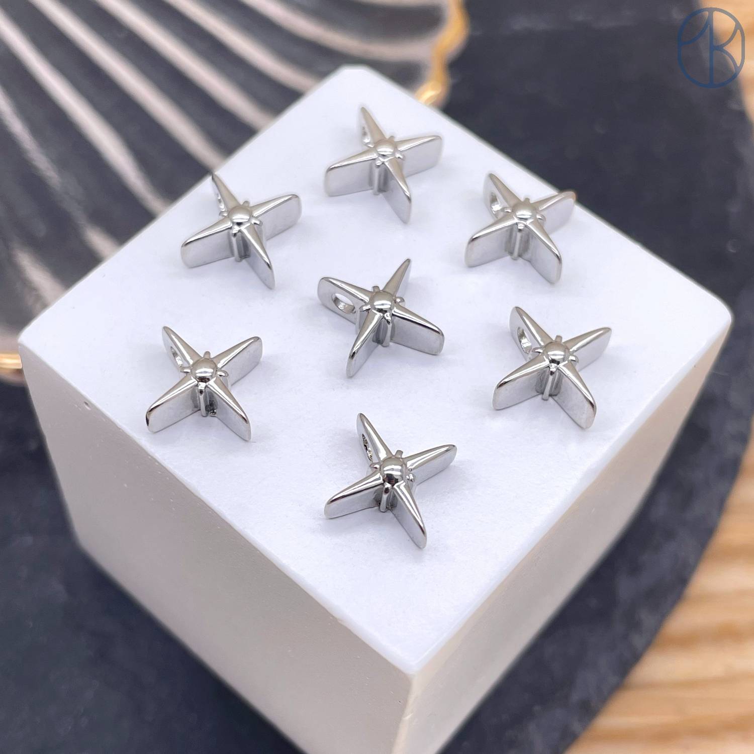 Бусина звезда, цвет серебро 8 мм
