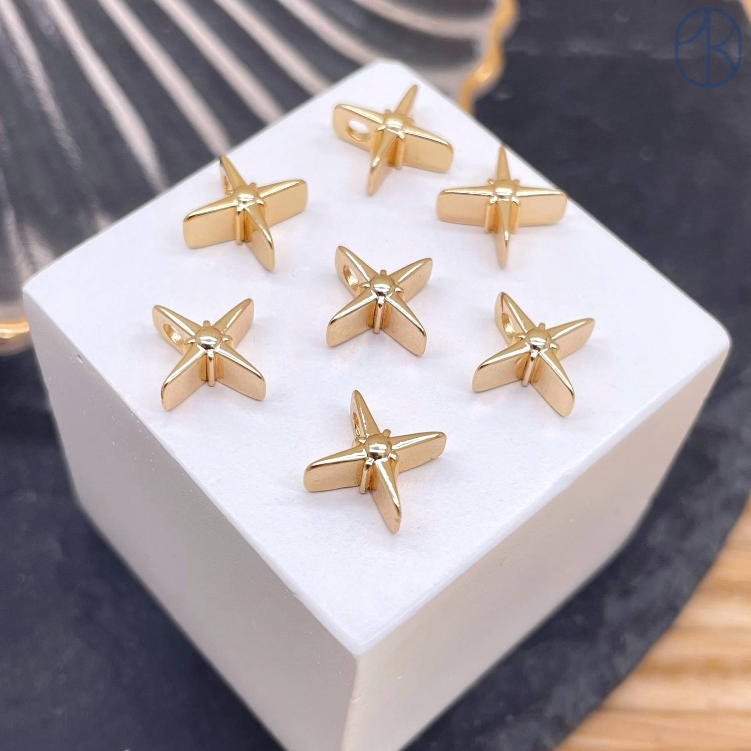 Бусина звезда, цвет золото 8 мм