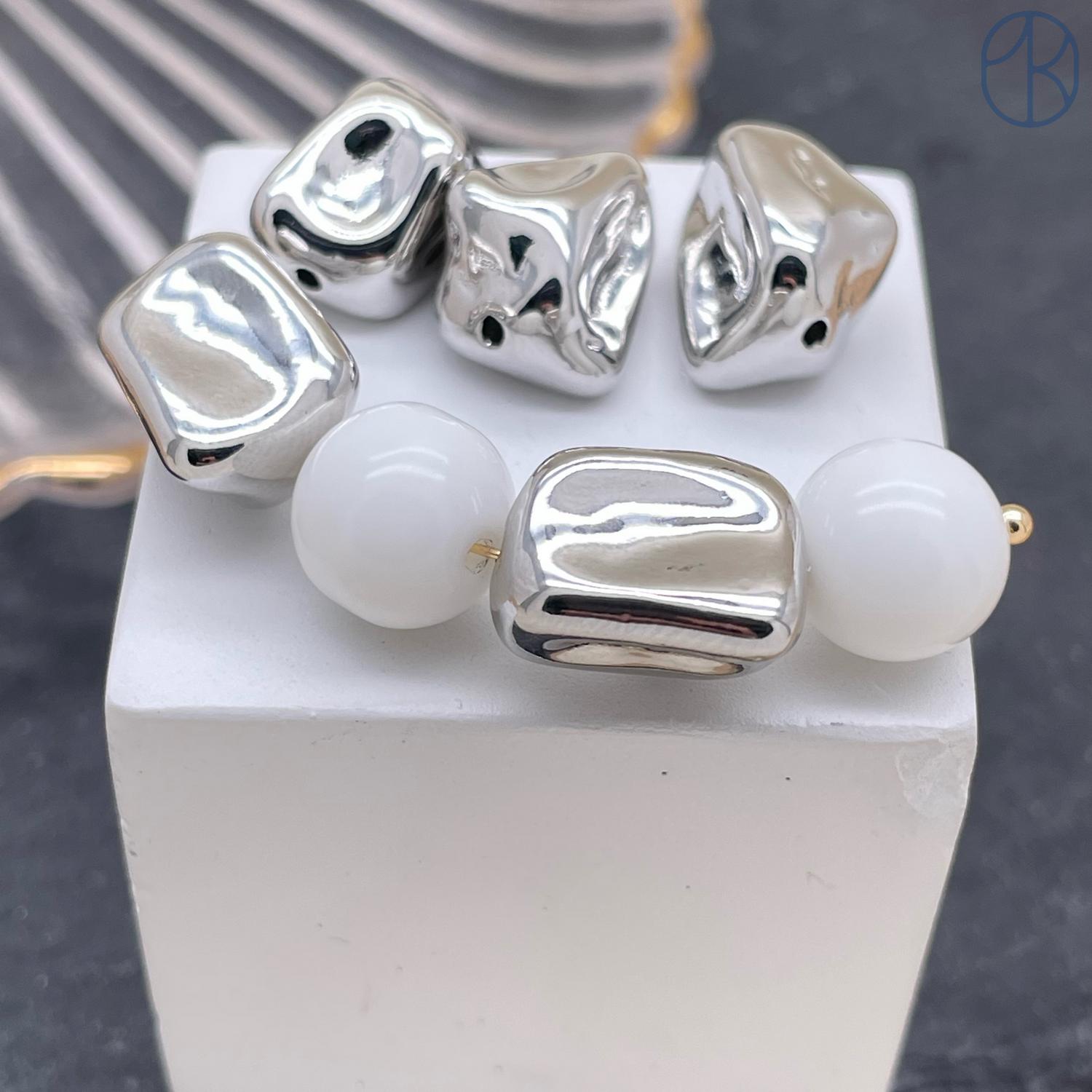 Бусина фриформ, цвет серебро, 14х10 мм