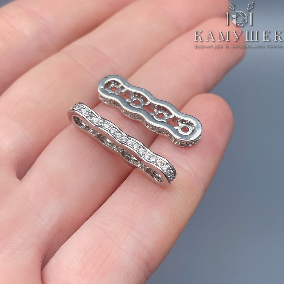 Бусина разделитель 4 ряда цирконы, цвет серебро 25х7 мм