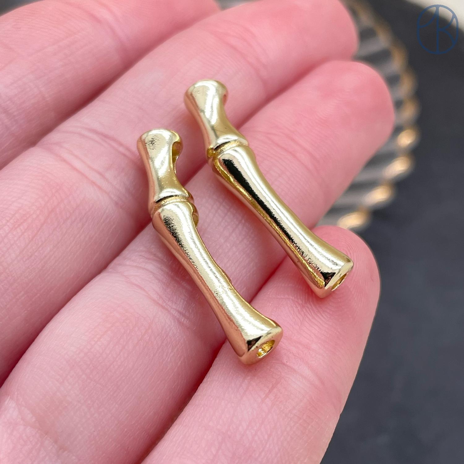 Бусина трубочка бамбук, цвет золото 30х5 мм