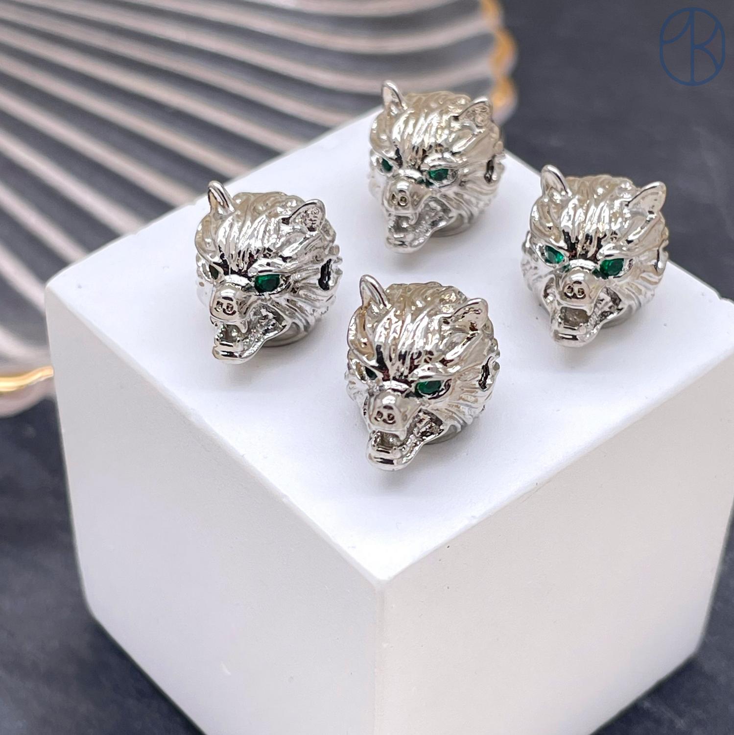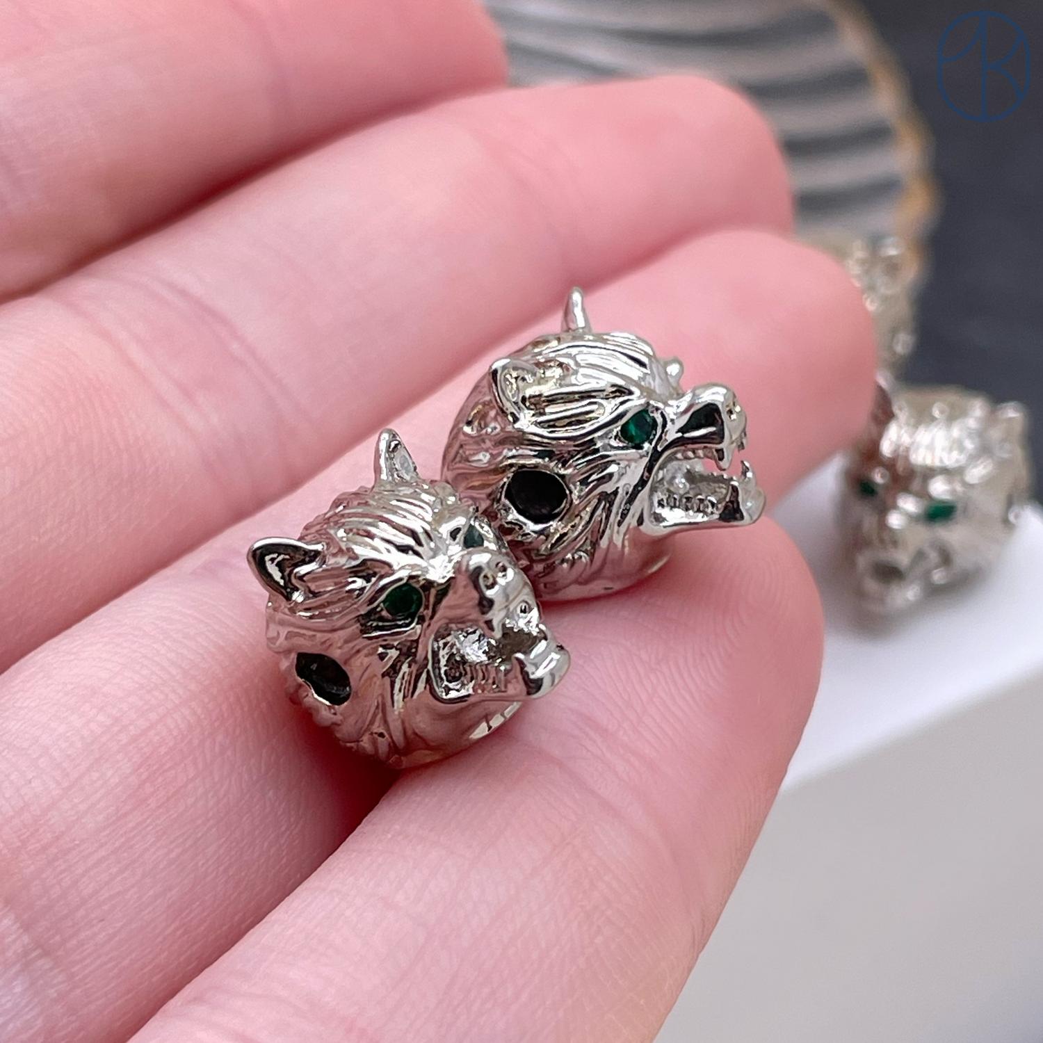Бусина волк, цвет серебро 11 мм