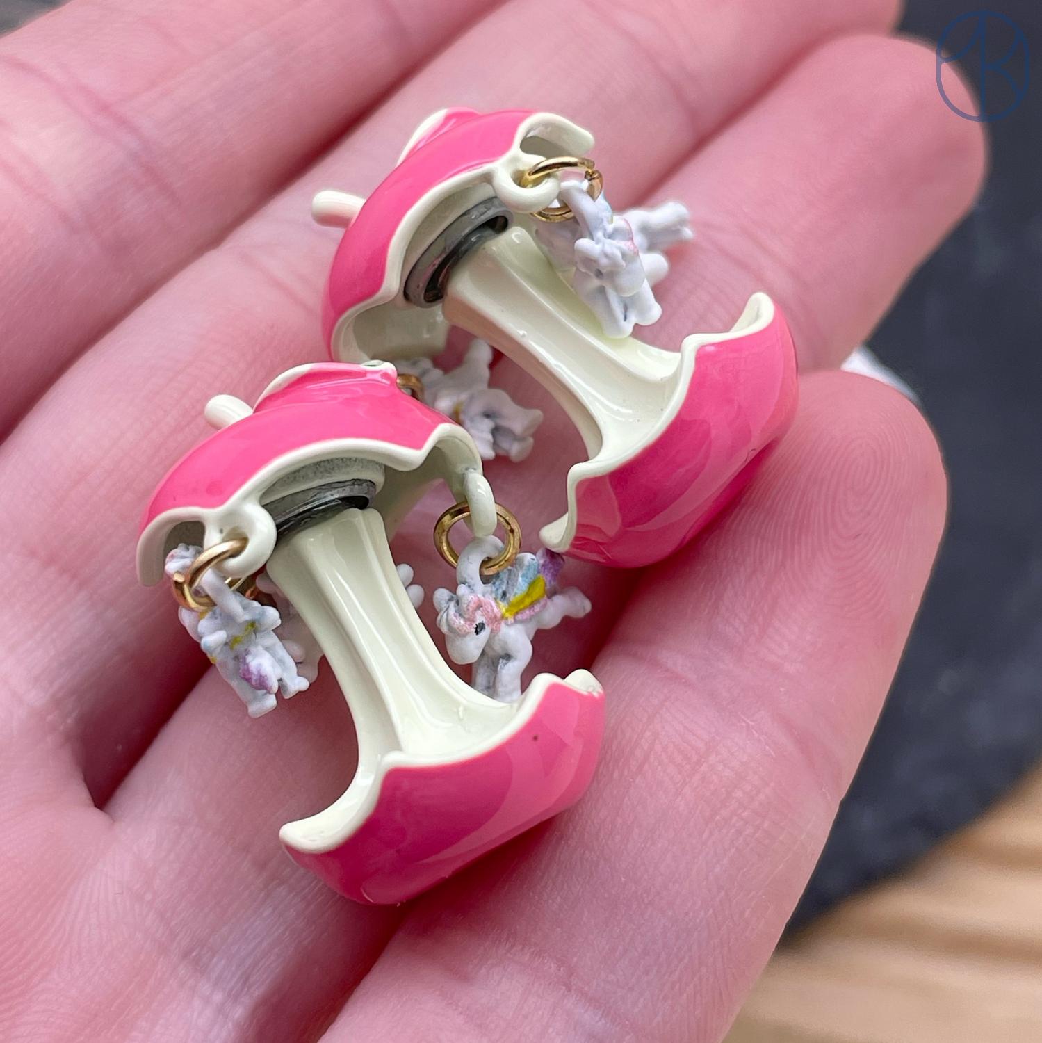Бусина яблоко и лошадки розовая эмаль 23х18 мм