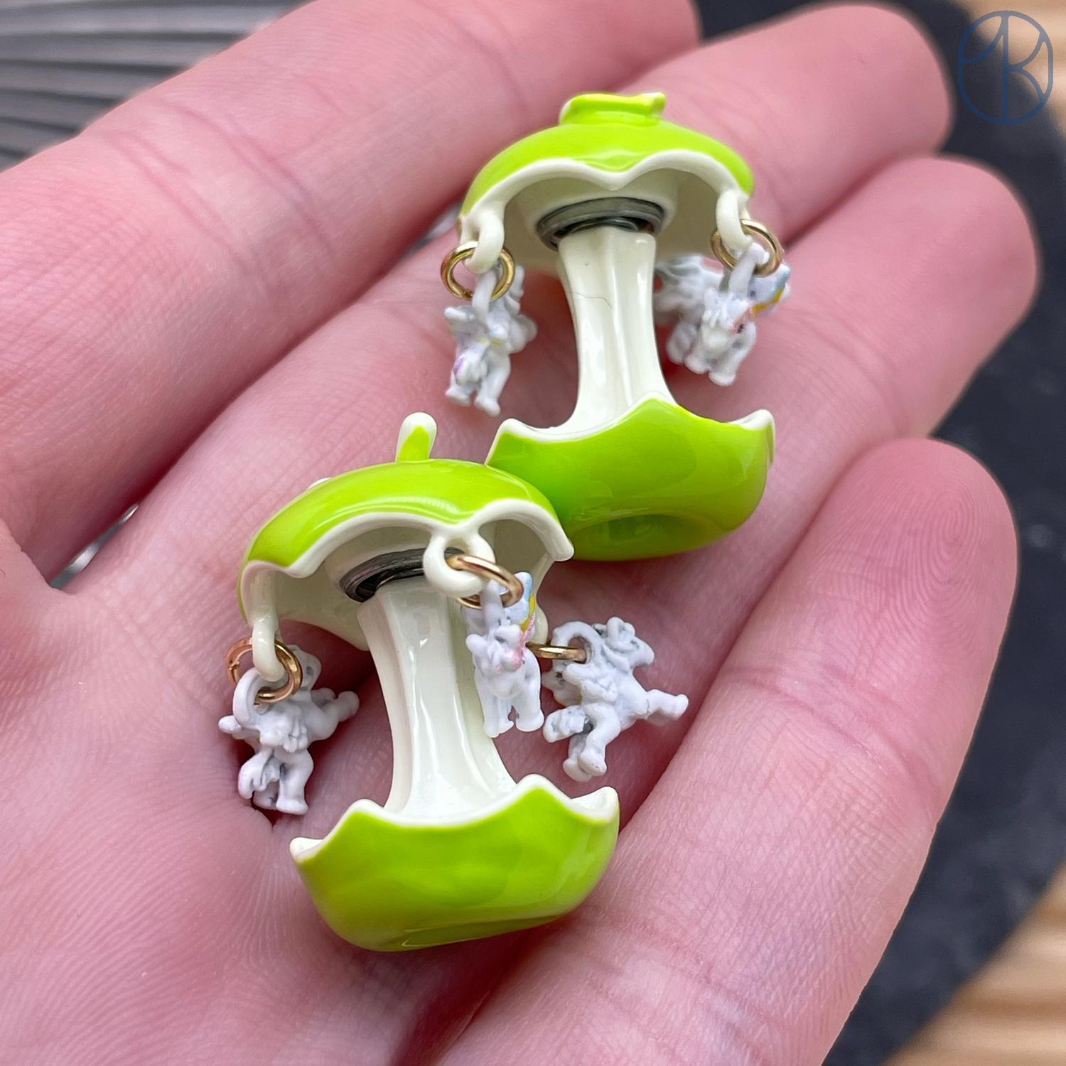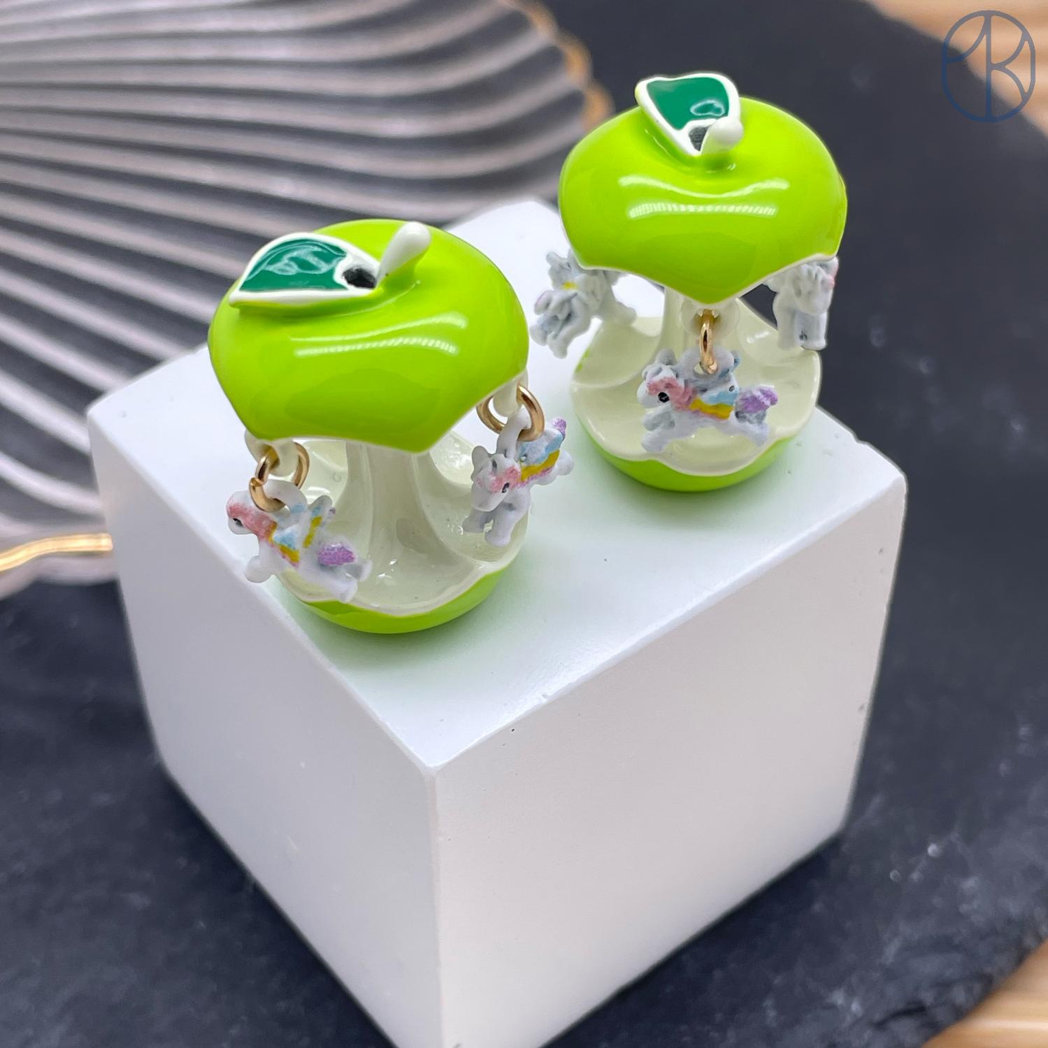 Бусина яблоко и лошадки зеленая эмаль 23х18 мм
