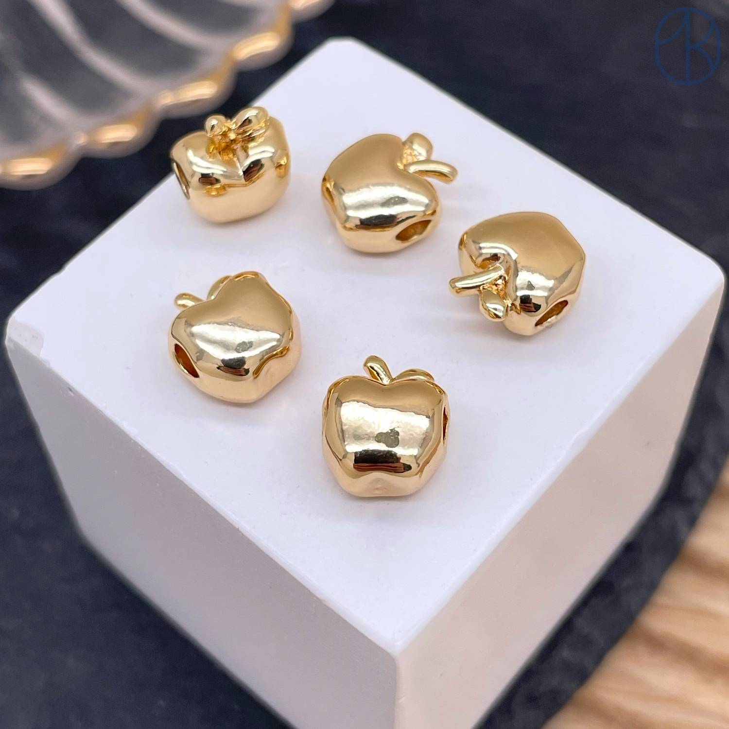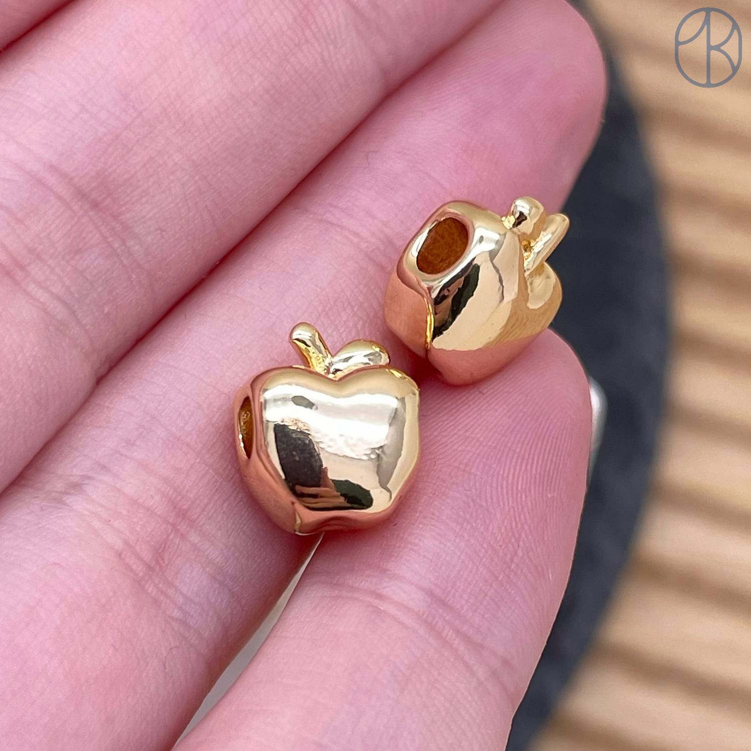 Бусина яблоко, цвет золото 10 мм