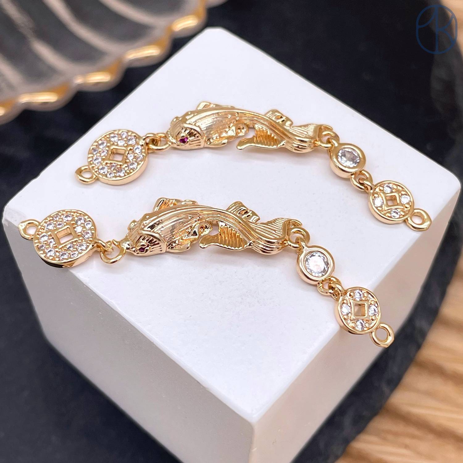 Коннектор рыба, цвет золото 46 мм