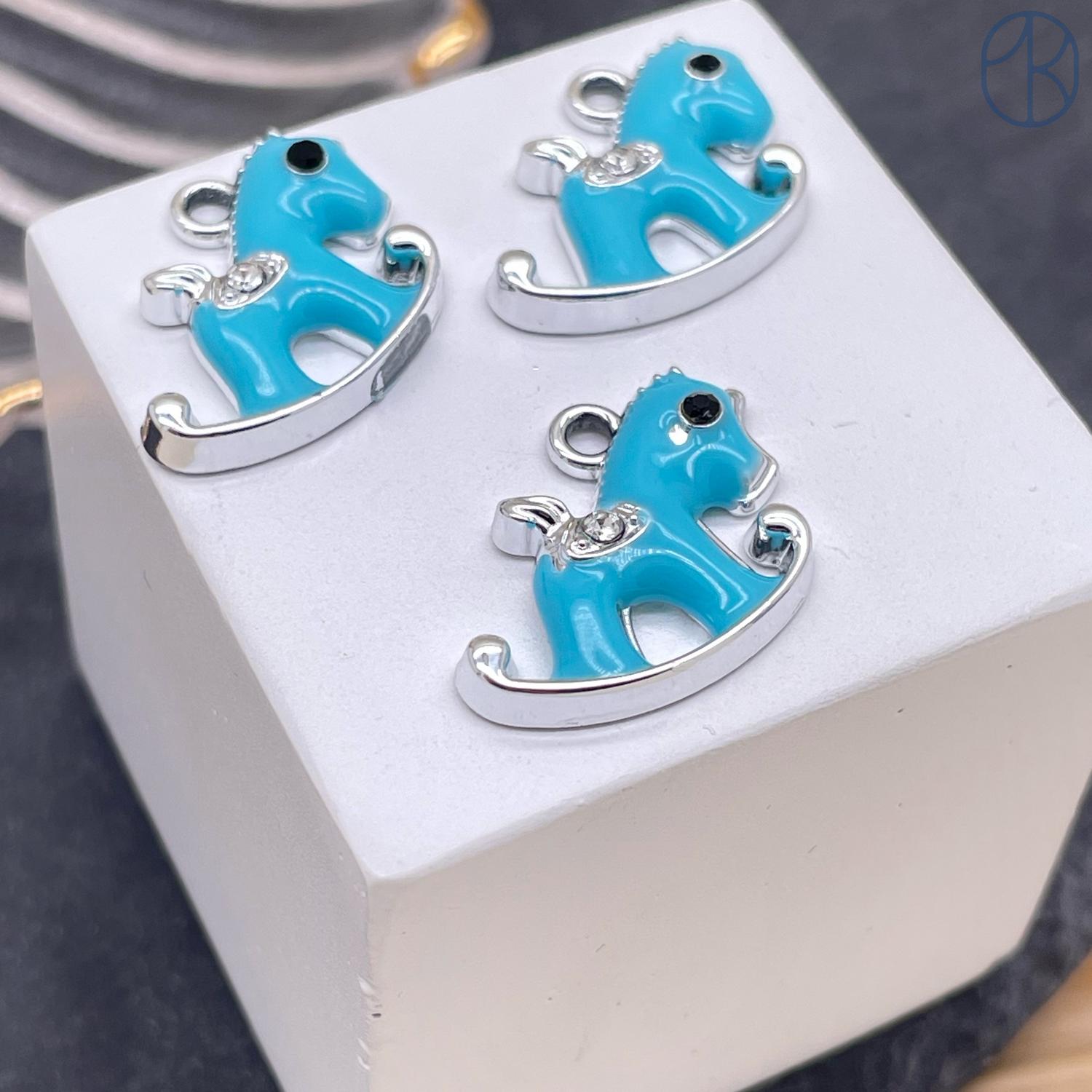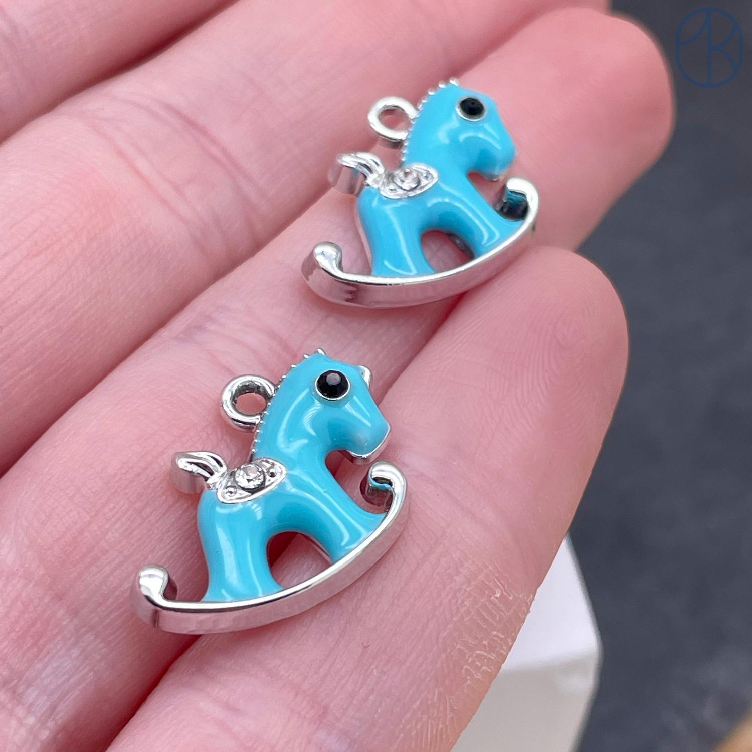 Подвеска лошадь голубая эмаль, цвет серебро 16х20 мм