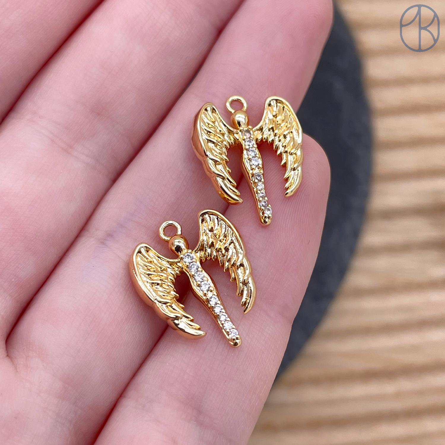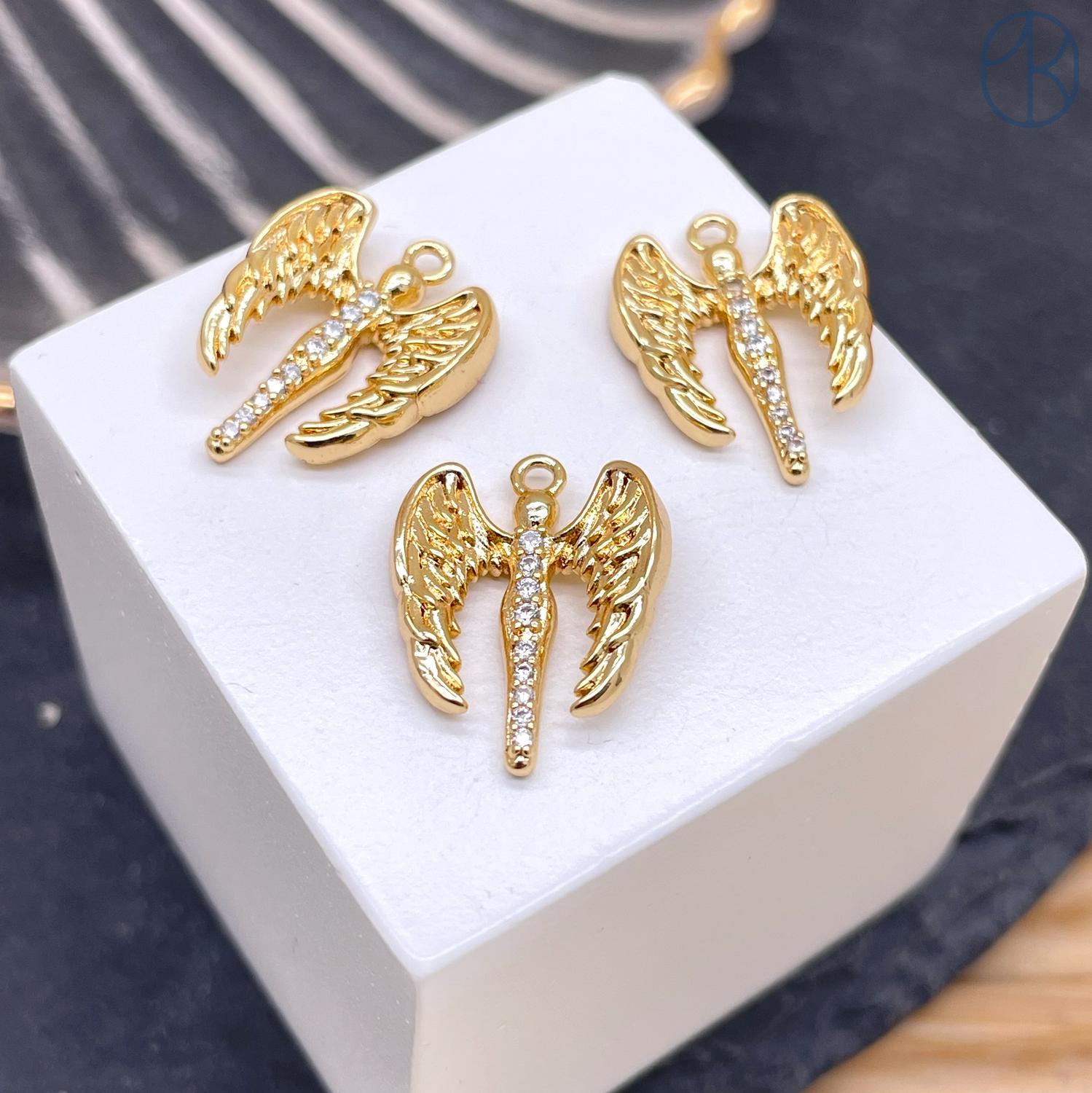 Подвеска ангел цирконы, цвет золото 14х14 мм