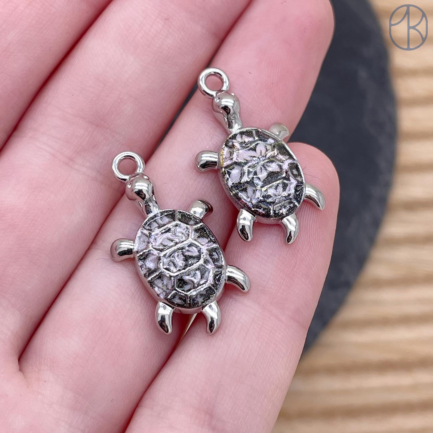 Подвеска черепаха черно-розовая, цвет серебро 20 мм