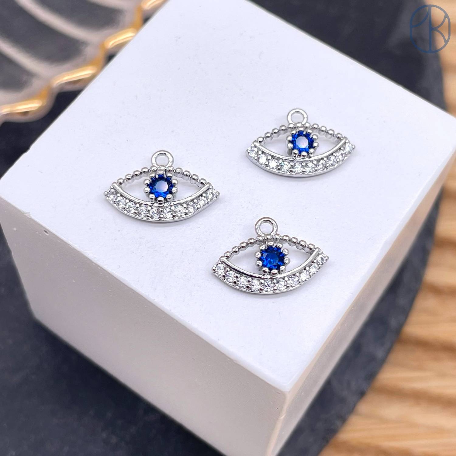 Подвеска глаз циркон, цвет серебро 12 мм
