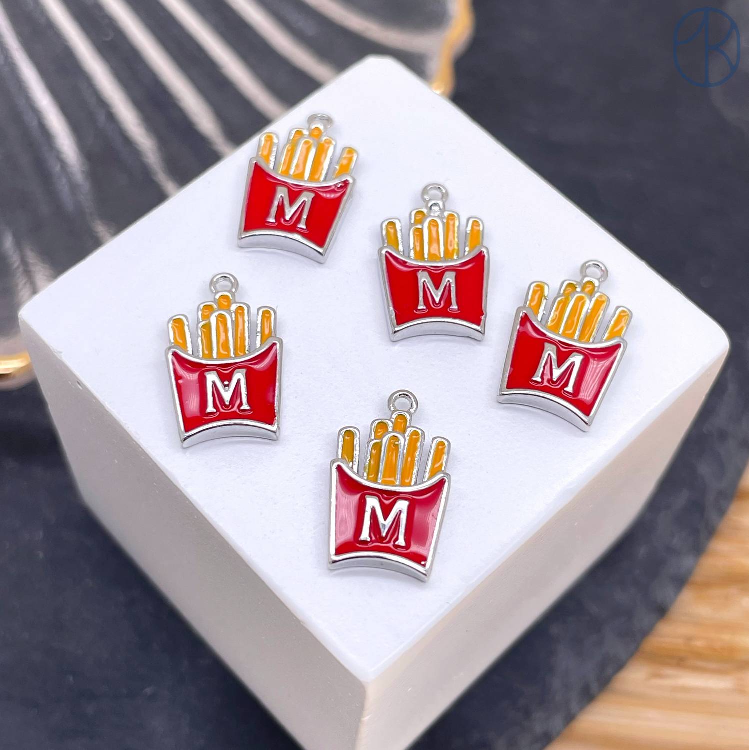 Подвеска картошка фри, цвет серебро 14 мм