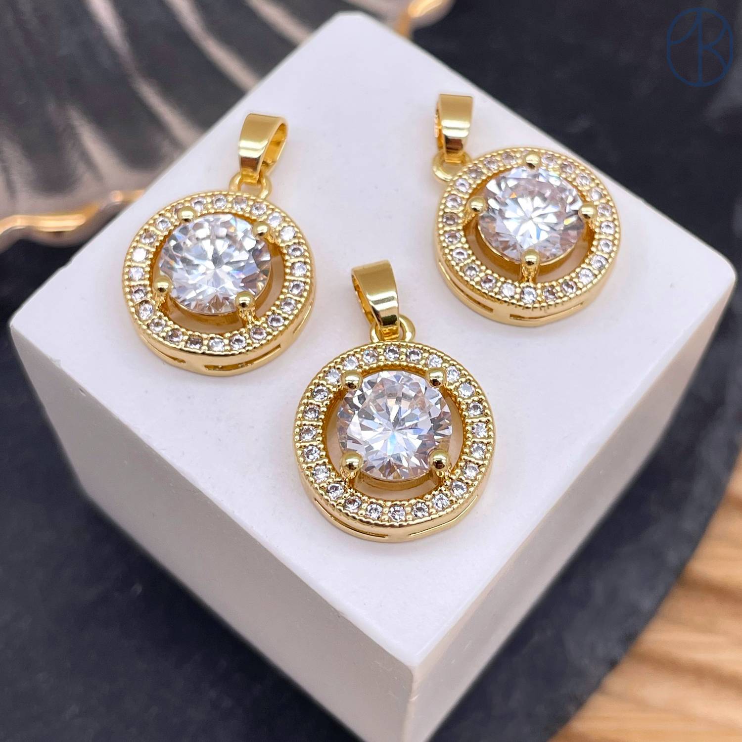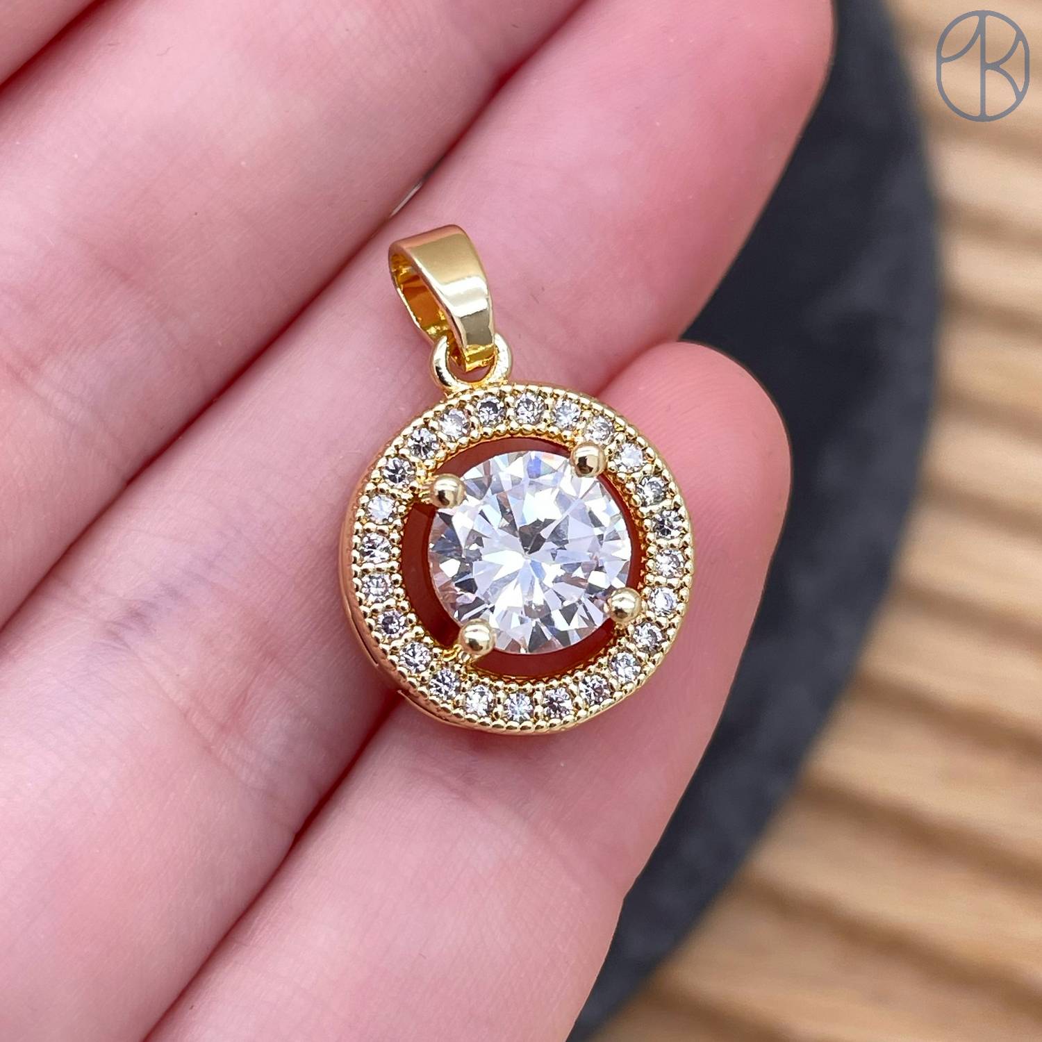 Подвеска круг циркон, цвет золото 17 мм
