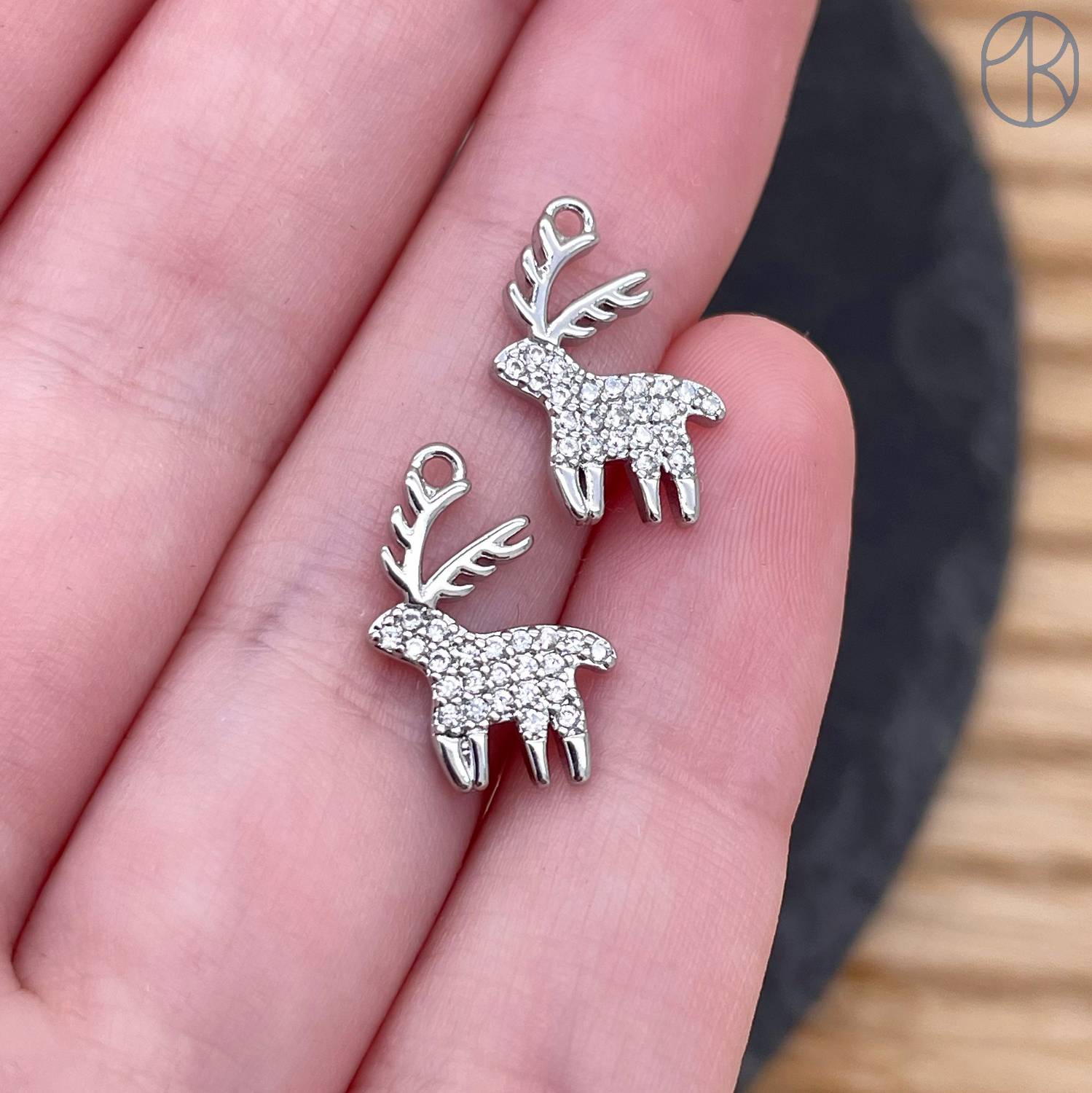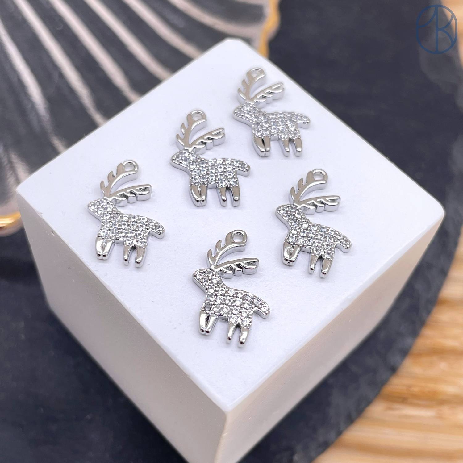Подвеска олень цирконы, цвет серебро 14 мм
