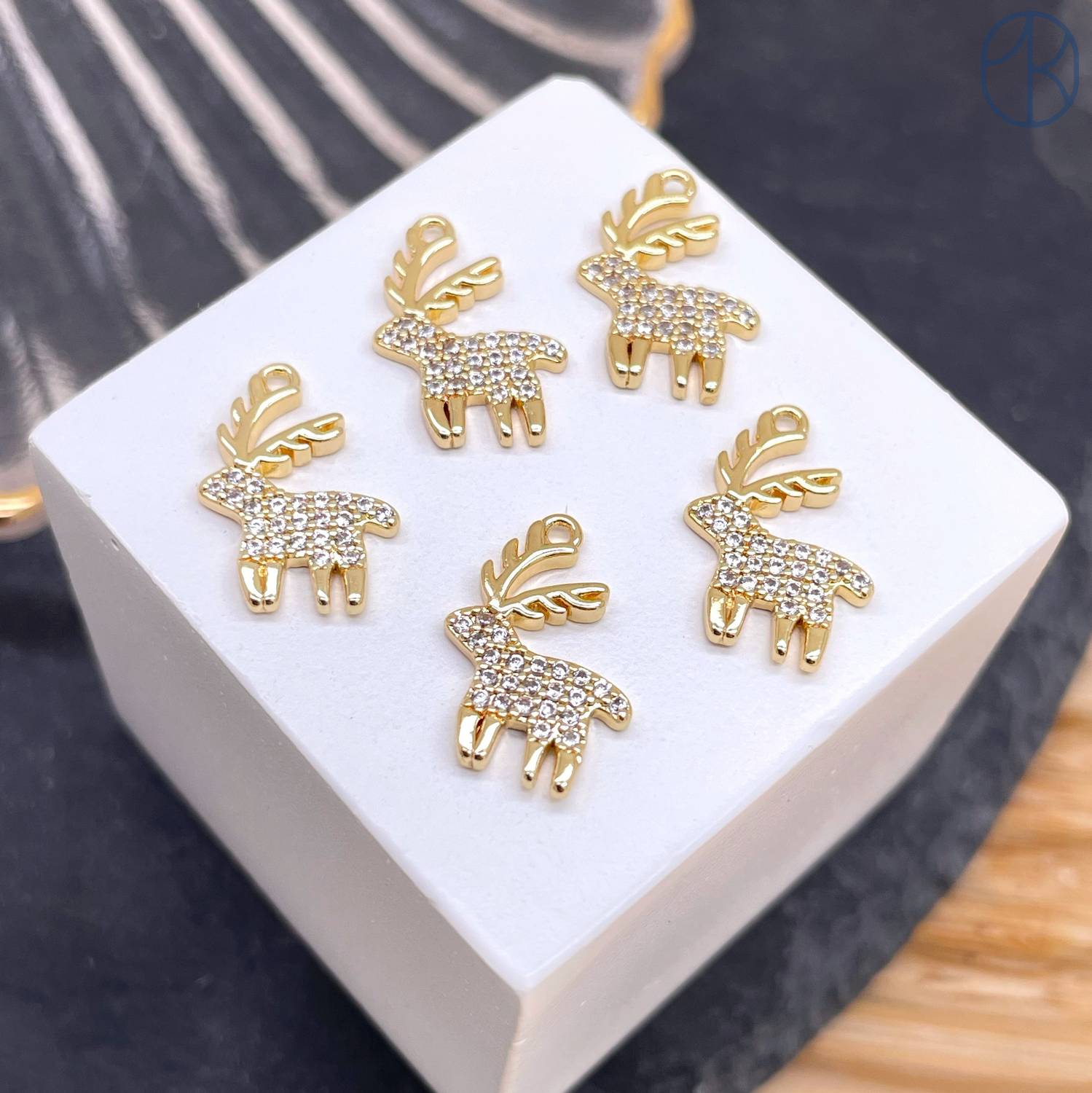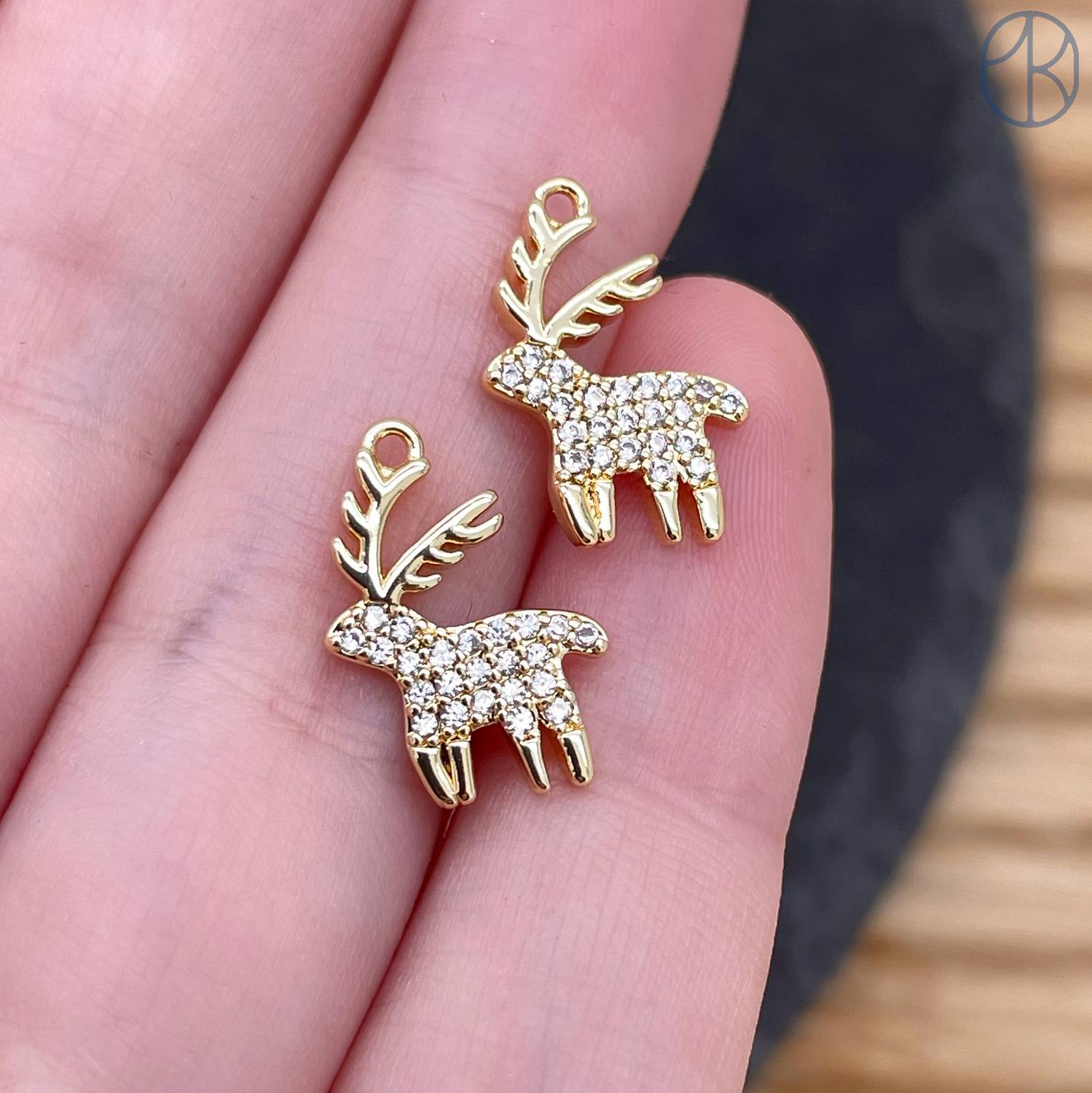 Подвеска олень цирконы, цвет золото 14 мм