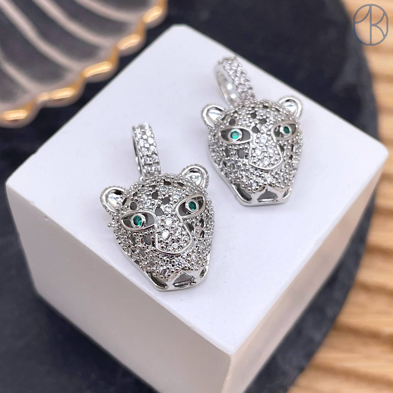 Подвеска пантера цирконы, цвет серебро 16 мм
