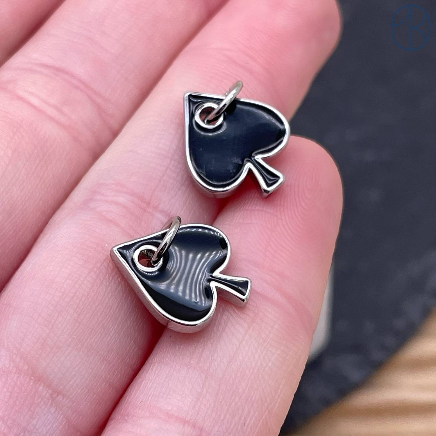 Подвеска пики черная эмаль, цвет серебро 15 мм
