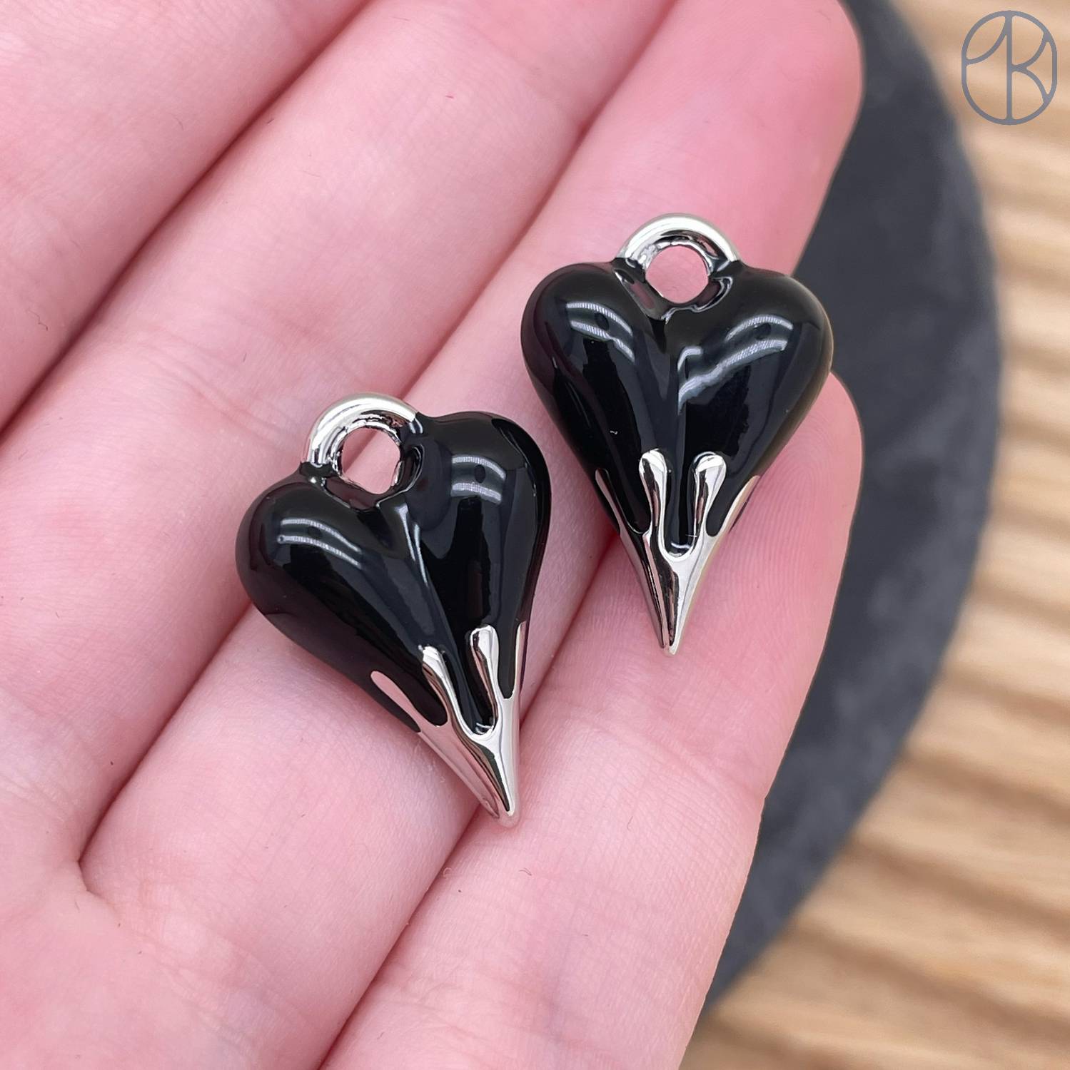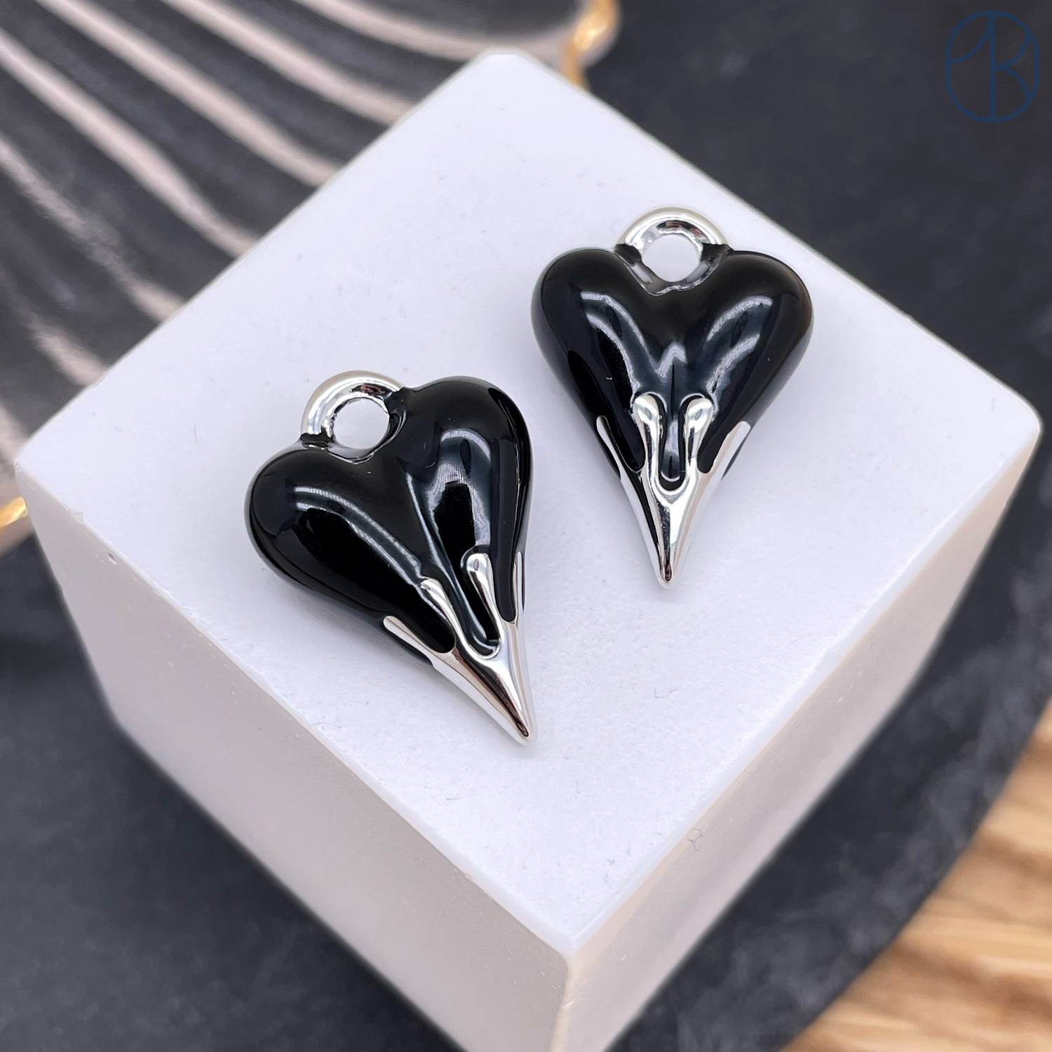 Подвеска сердце черная эмаль, цвет серебро 21 мм