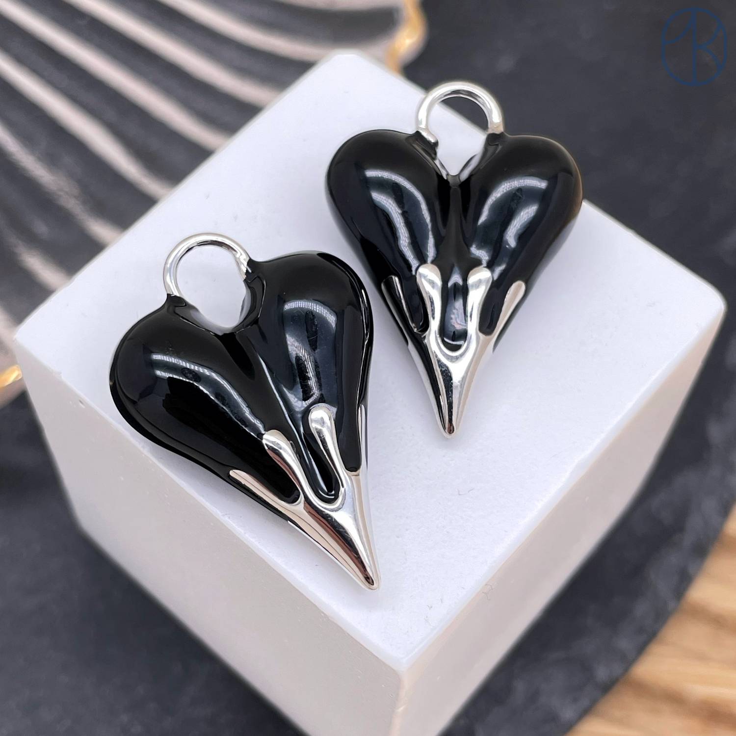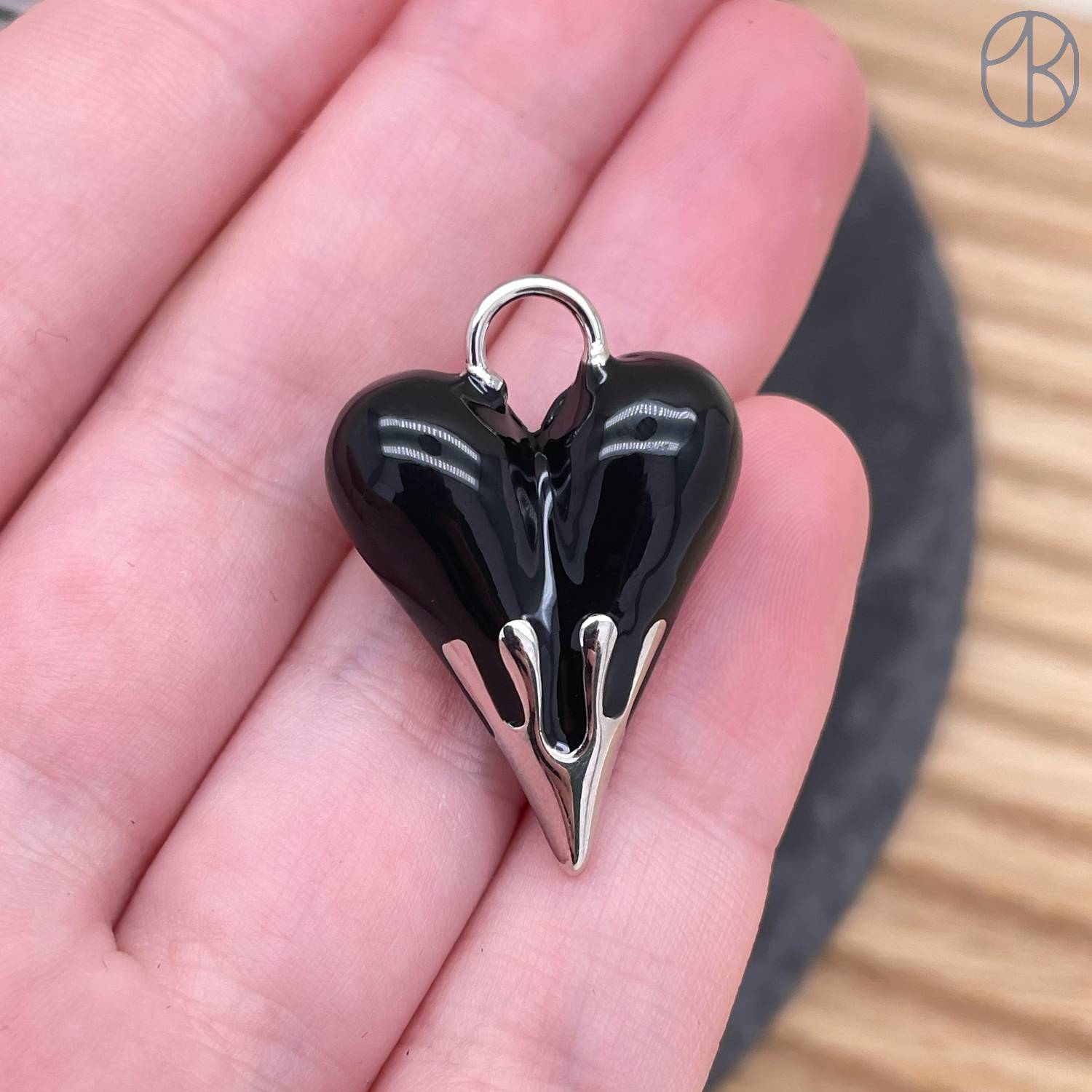 Подвеска сердце черная эмаль, цвет серебро 27 мм