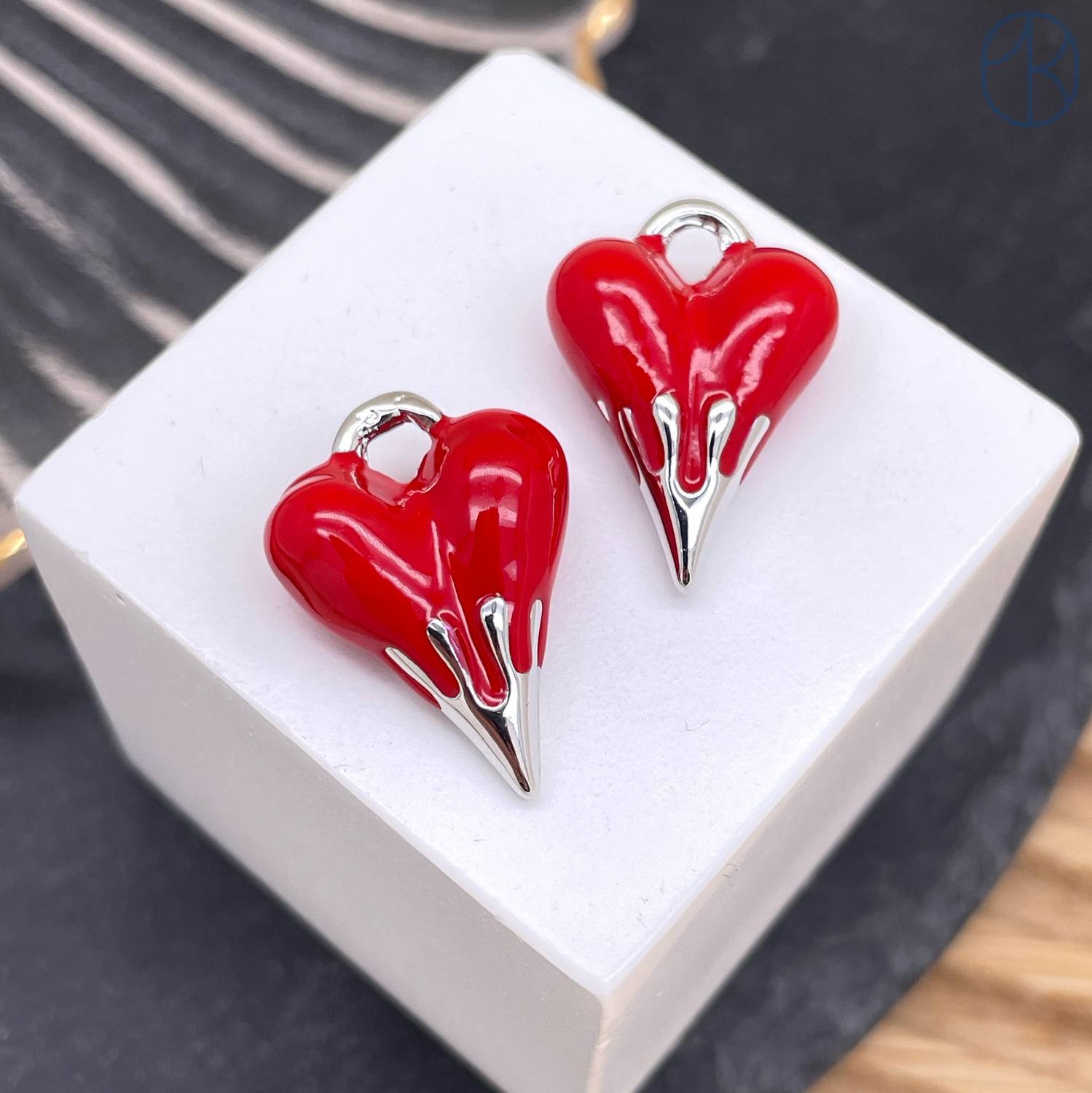 Подвеска сердце красная эмаль, цвет серебро 21 мм