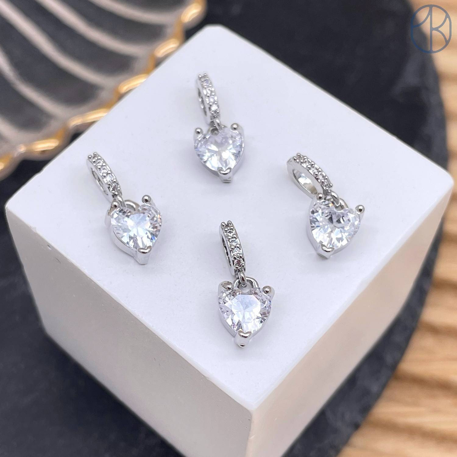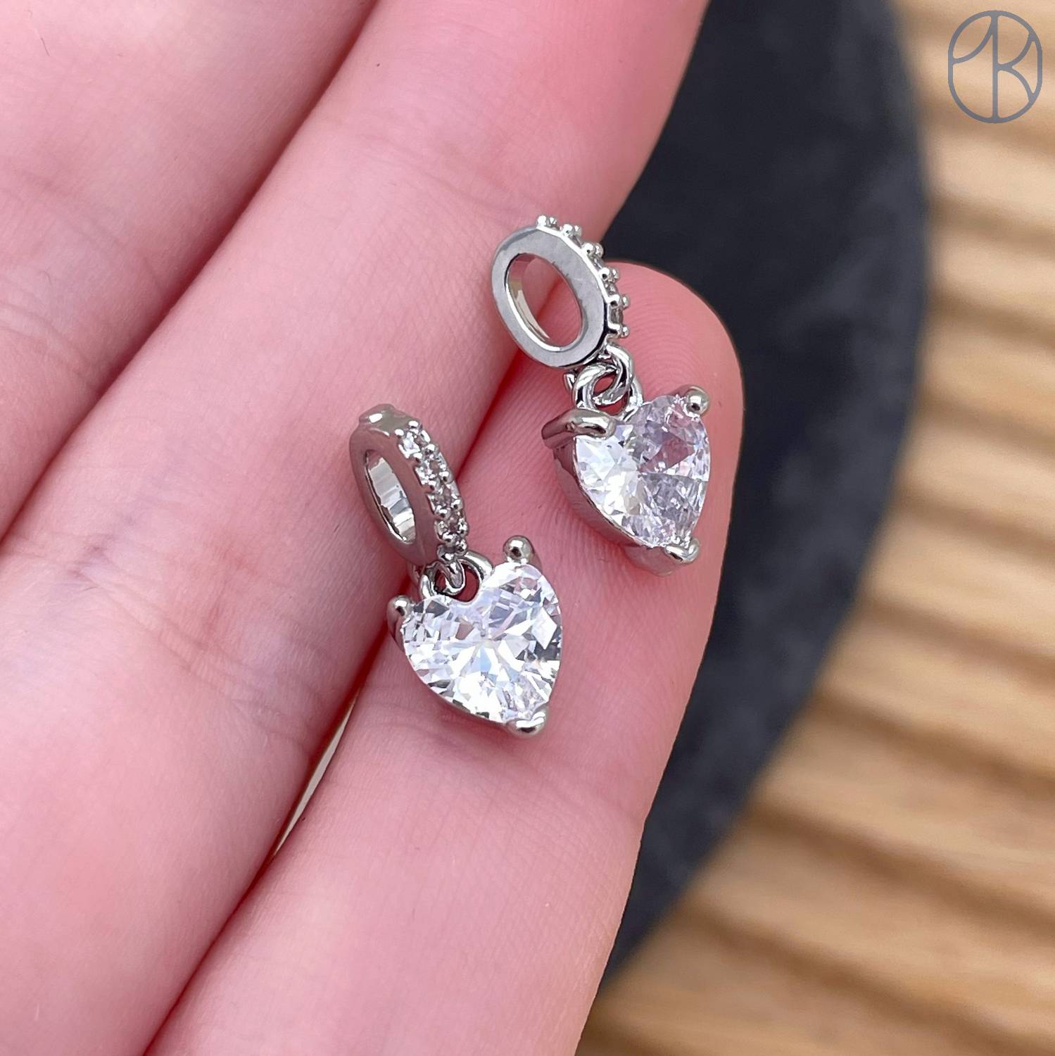 Подвеска сердце циркон, цвет серебро 7 мм