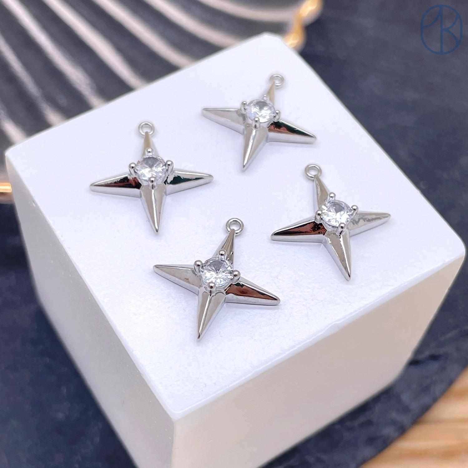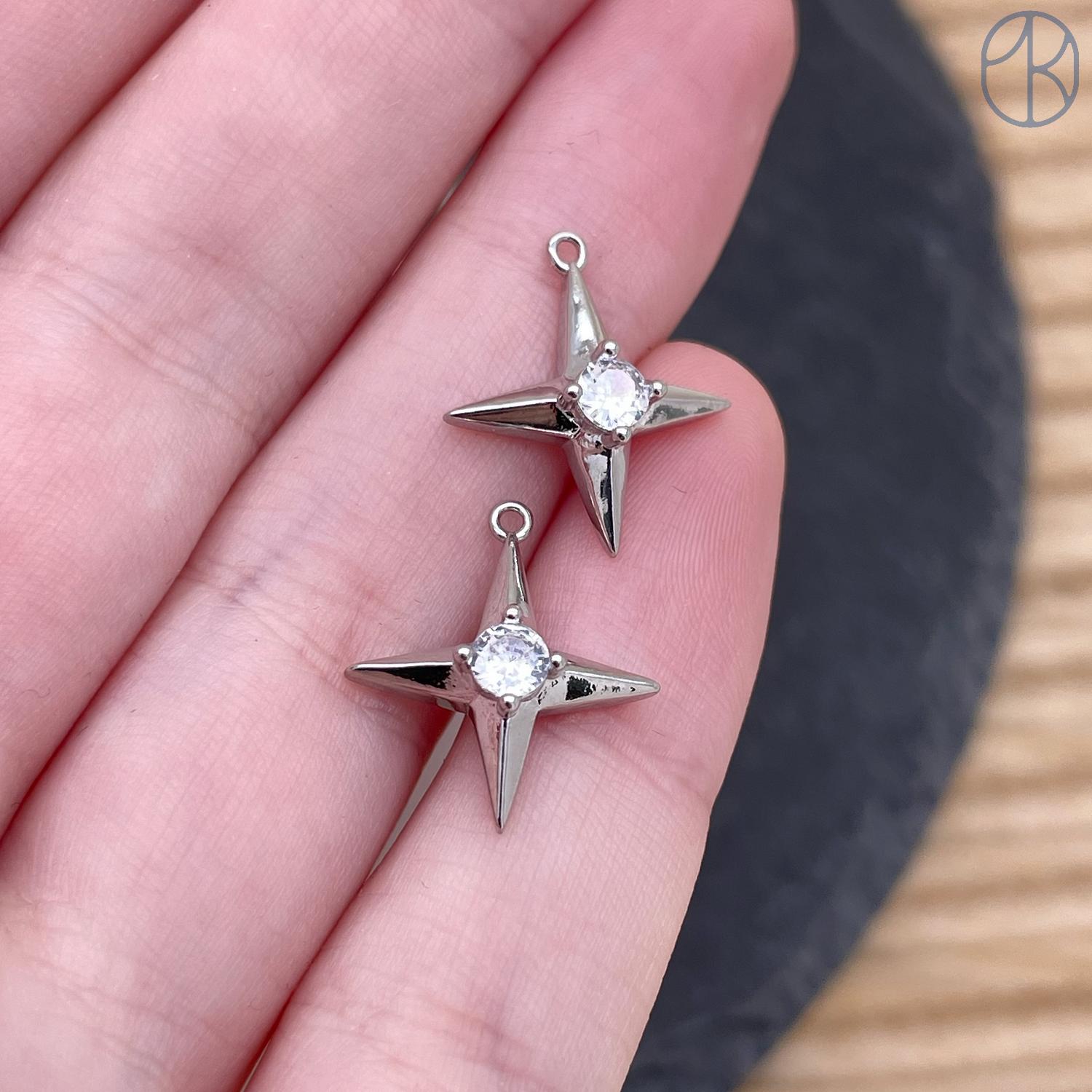 Подвеска северная звезда циркон, цвет серебро 16 мм