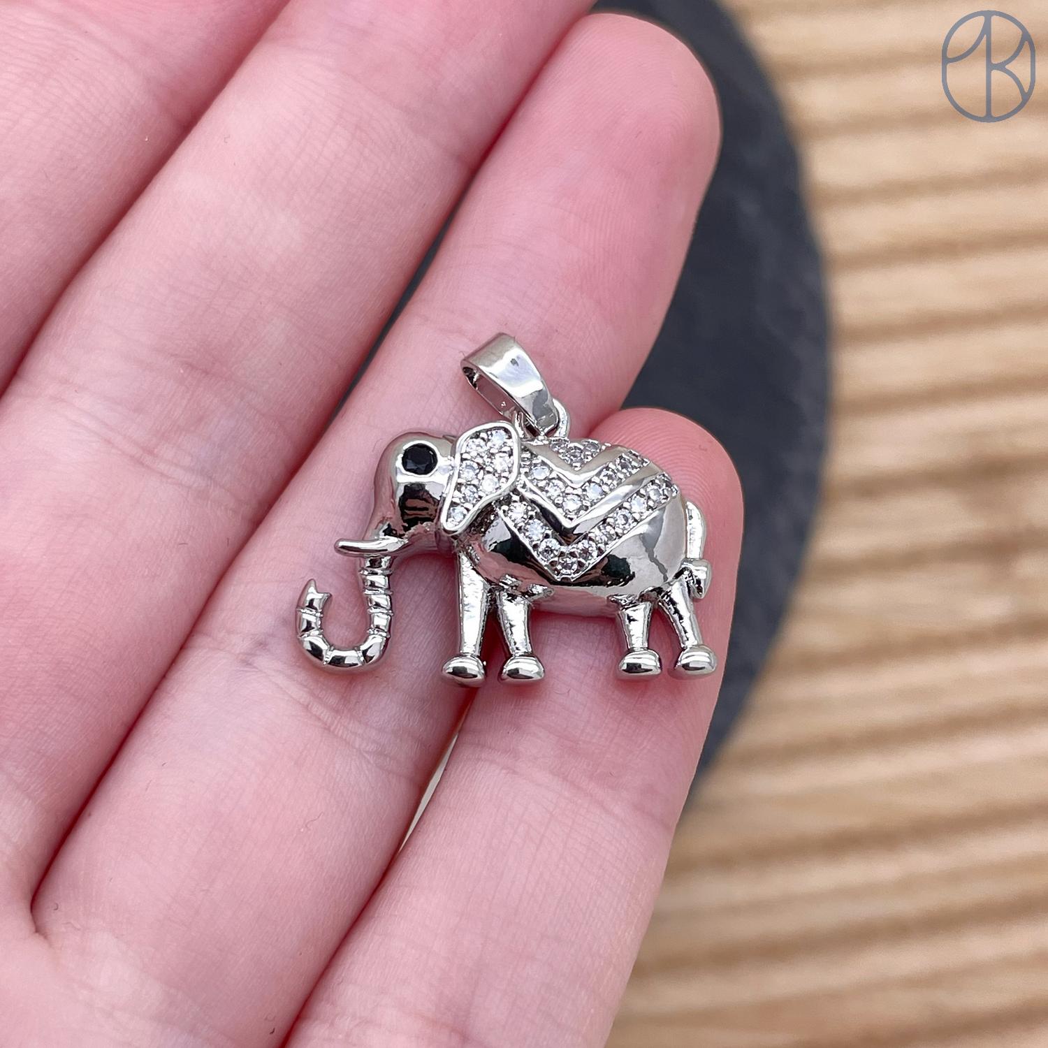 Подвеска слон цирконы, цвет серебро 20х15 мм