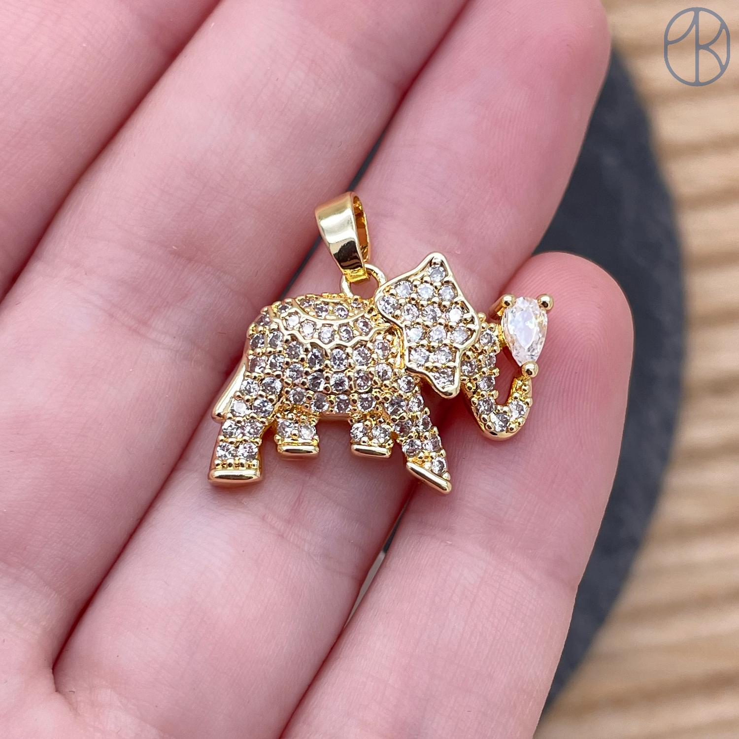Подвеска слон цирконы, цвет золото 20х15 мм