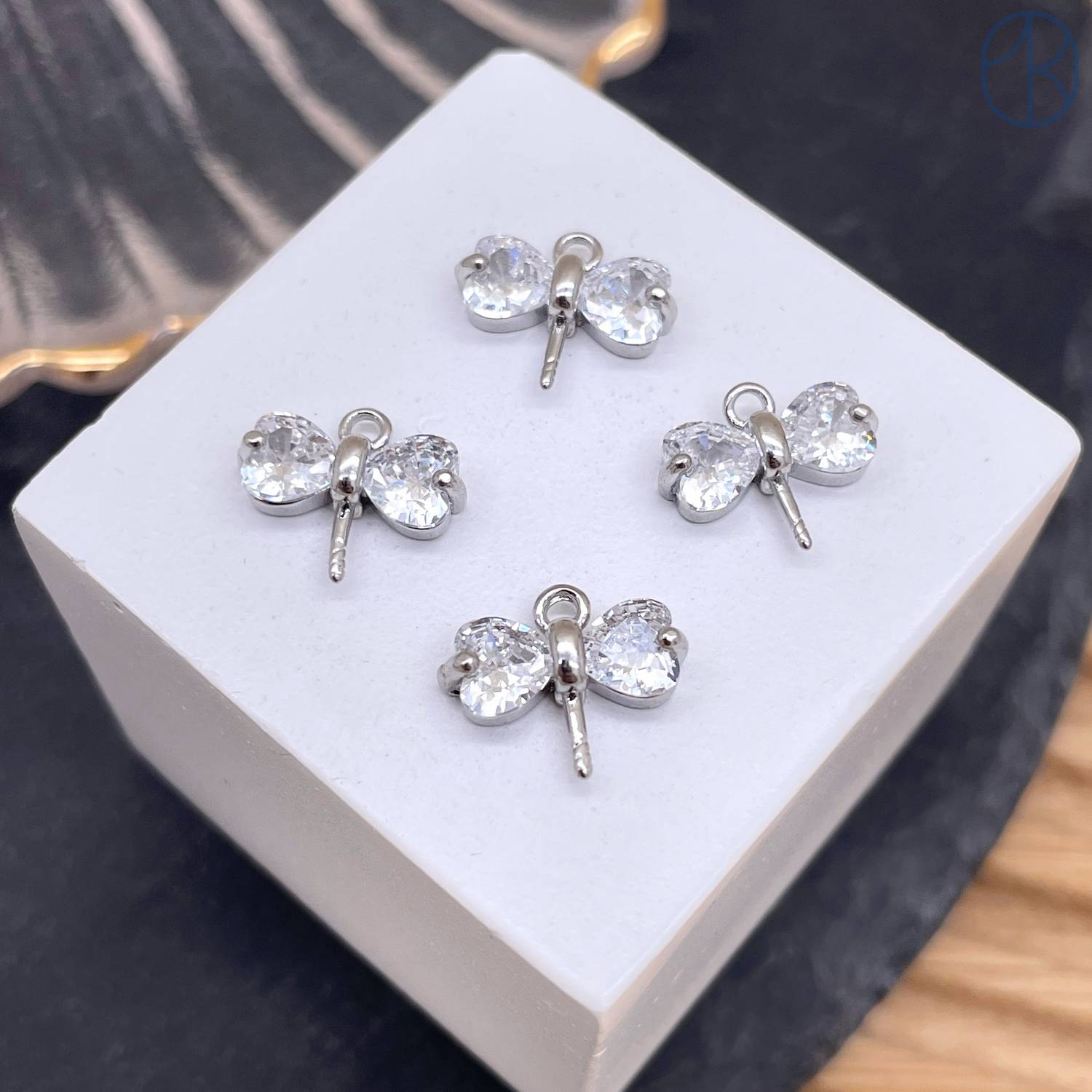 Подвеска стрекоза цирконы, цвет серебро 10 мм