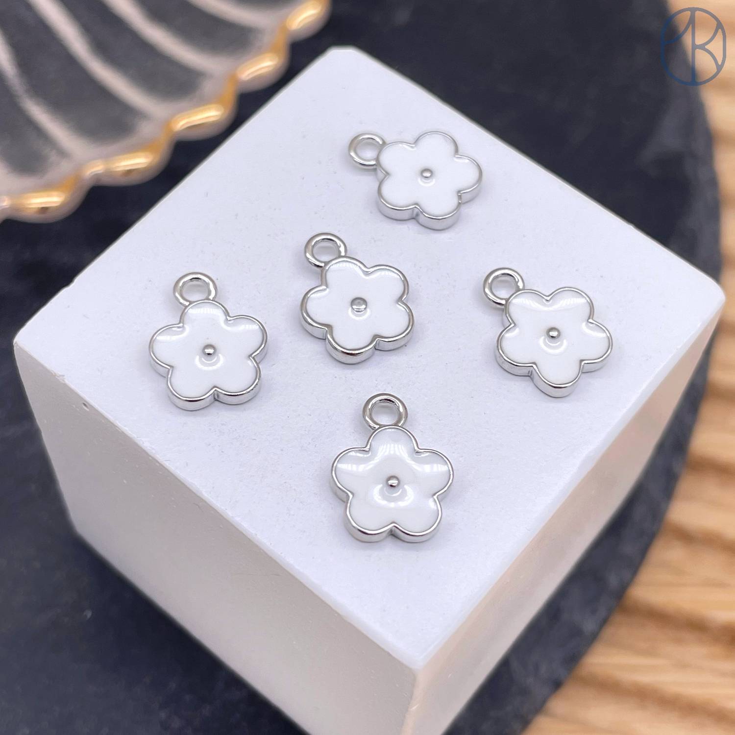 Подвеска цветок белая эмаль