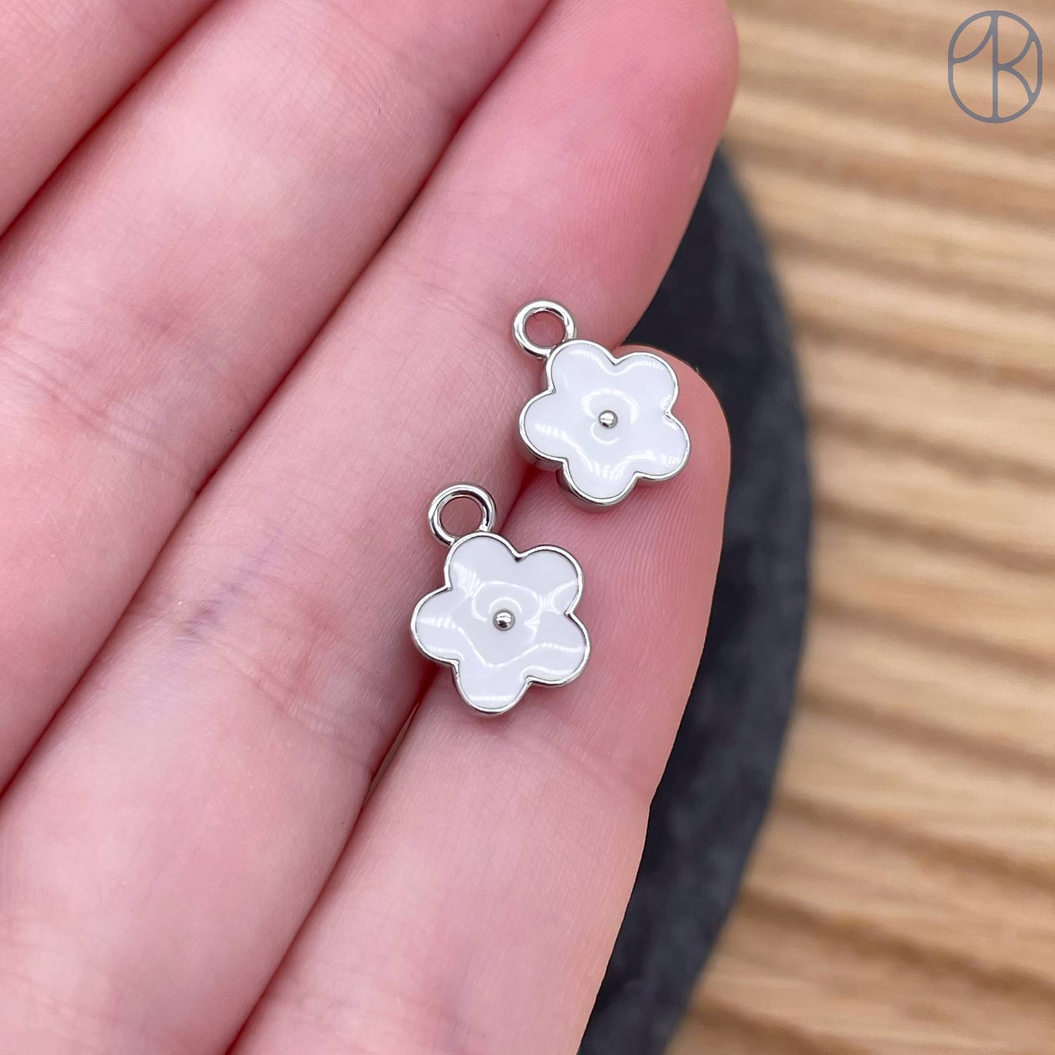 Подвеска цветок белая эмаль, цвет серебро 8 мм