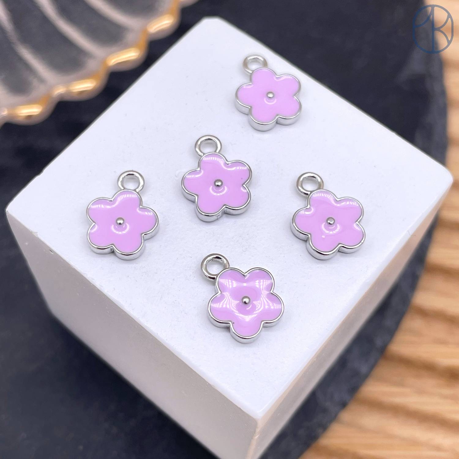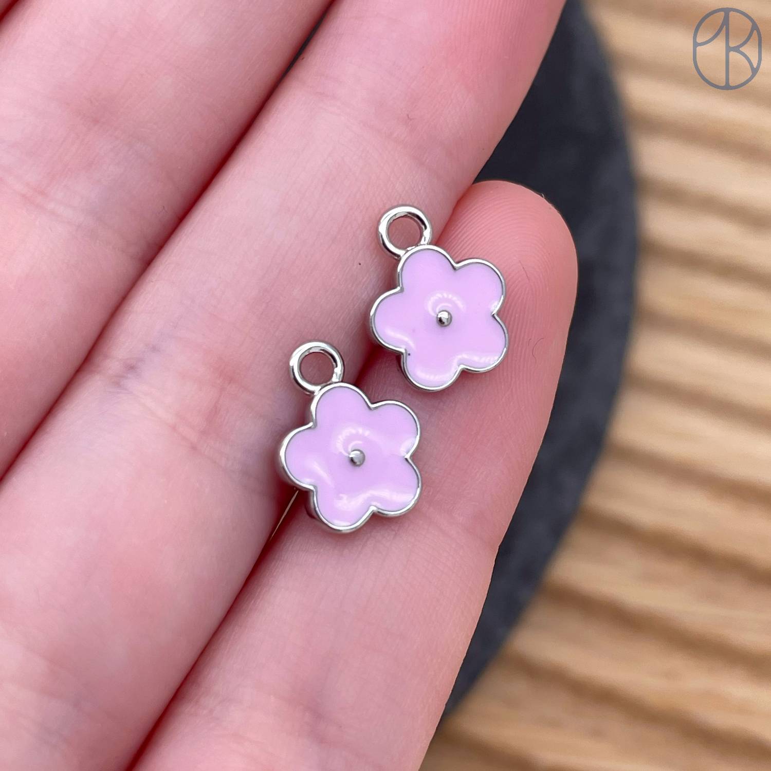 Подвеска цветок розовая эмаль, цвет серебро 8 мм
