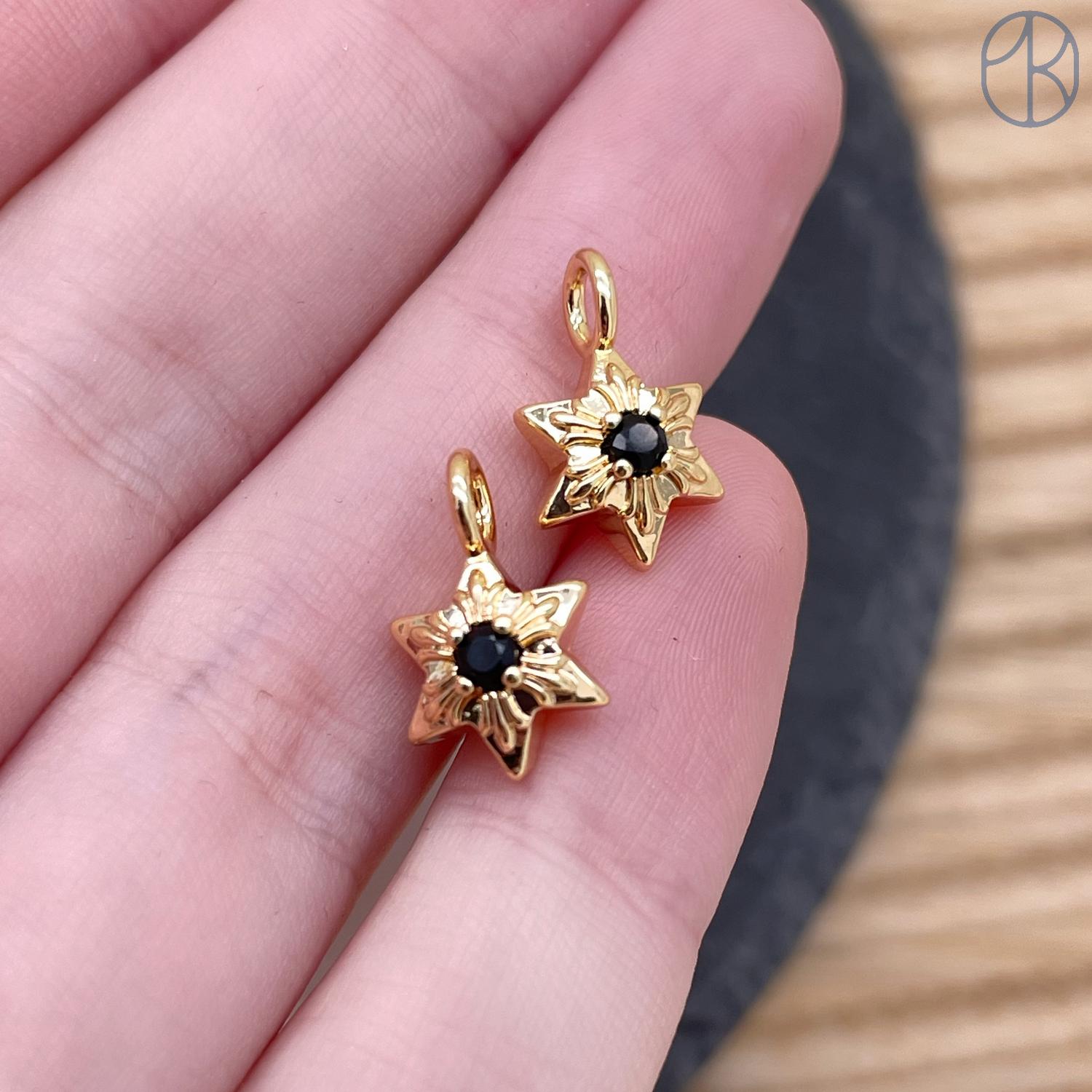Подвеска звезда черный циркон, цвет золото 9 мм