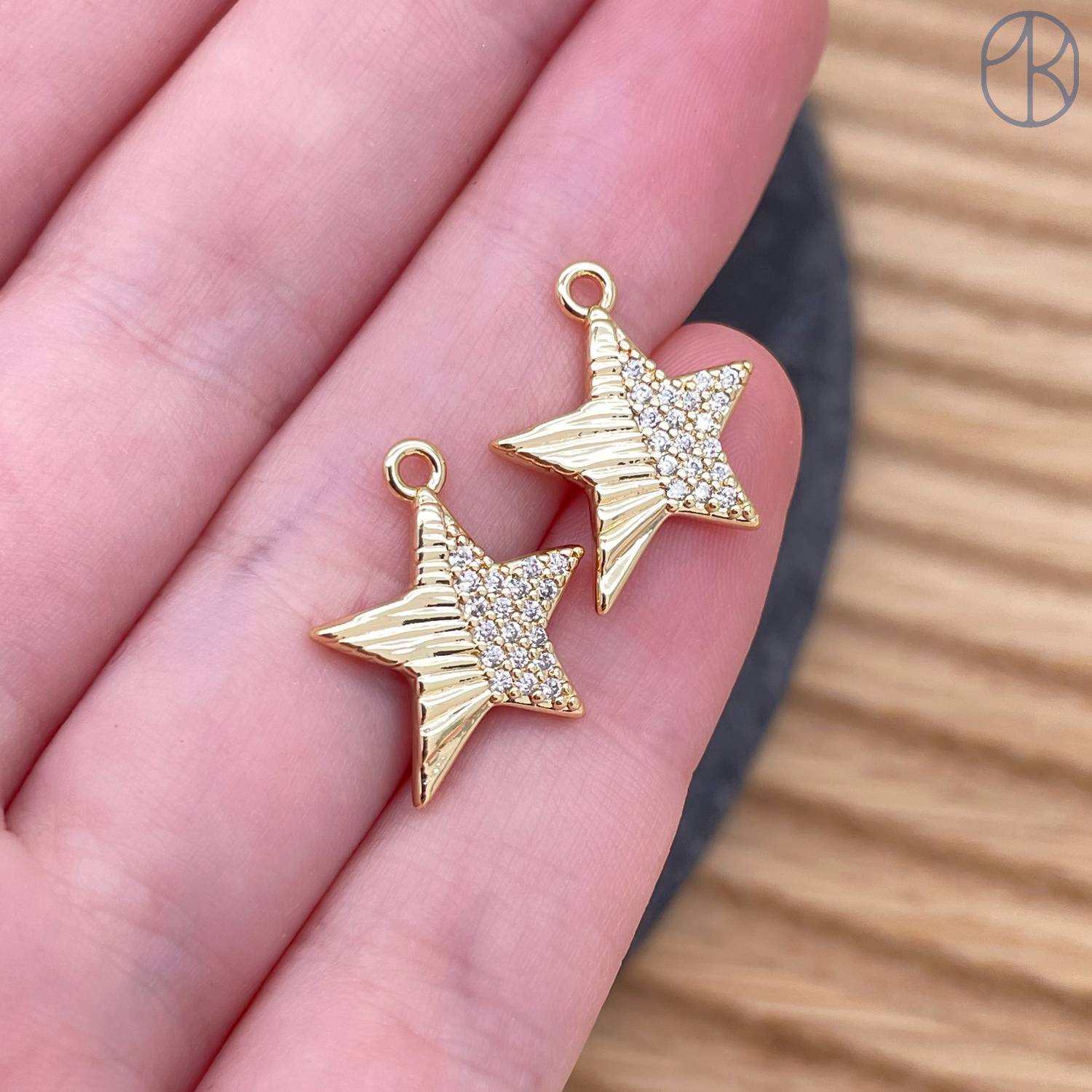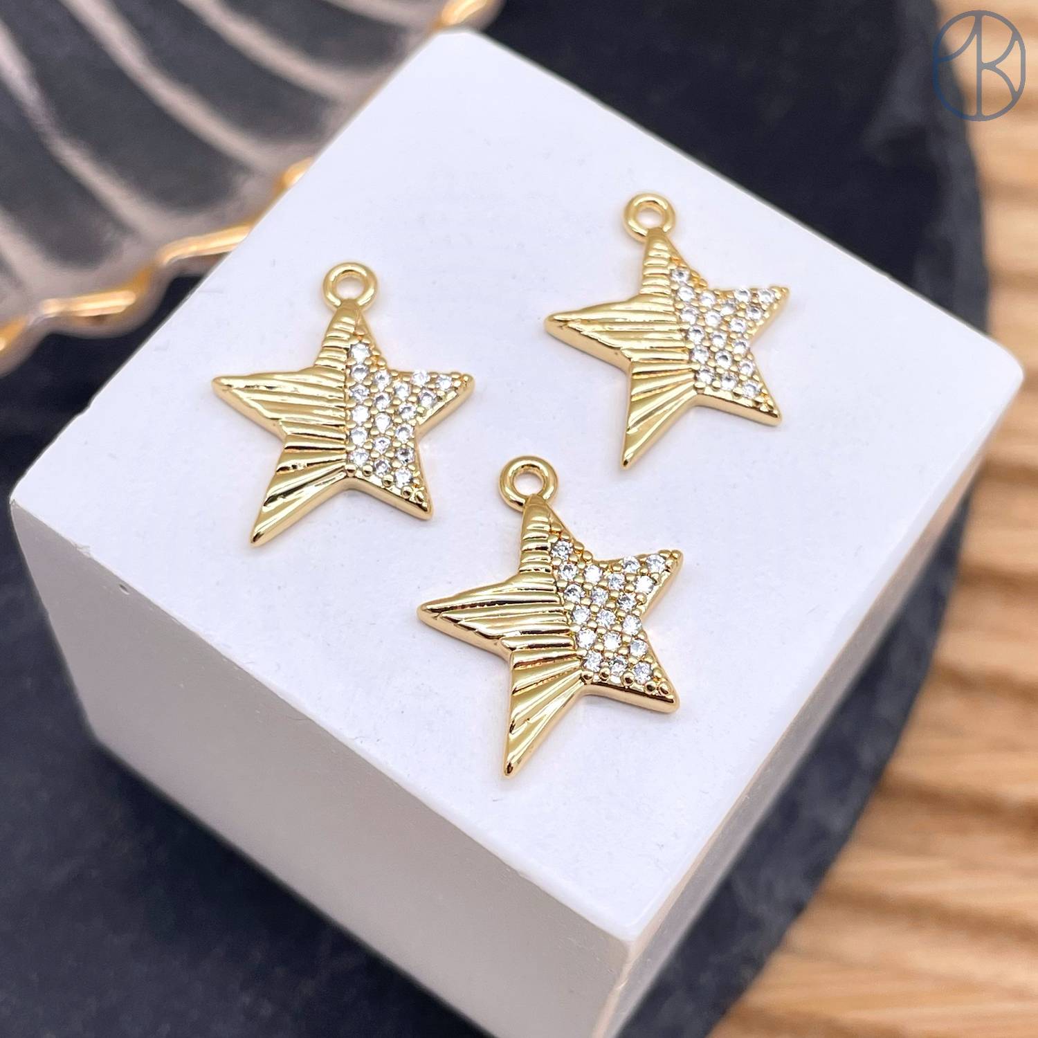 Подвеска звезда цирконы, цвет золото 14 мм