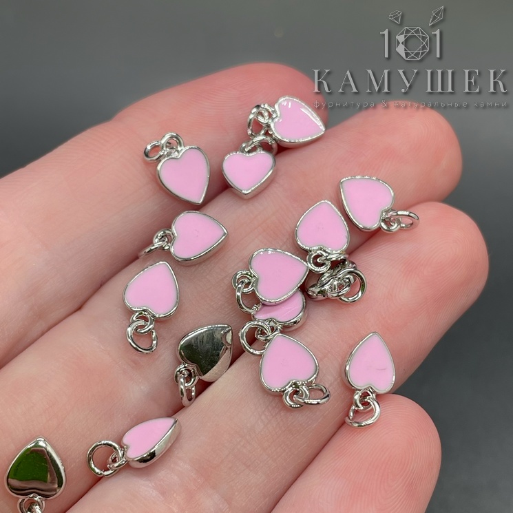 Подвеска сердце розовая эмаль, цвет серебро 9 мм