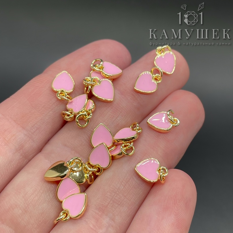 9*6,5мм Подвеска сердце розовая эмаль, цвет золото
